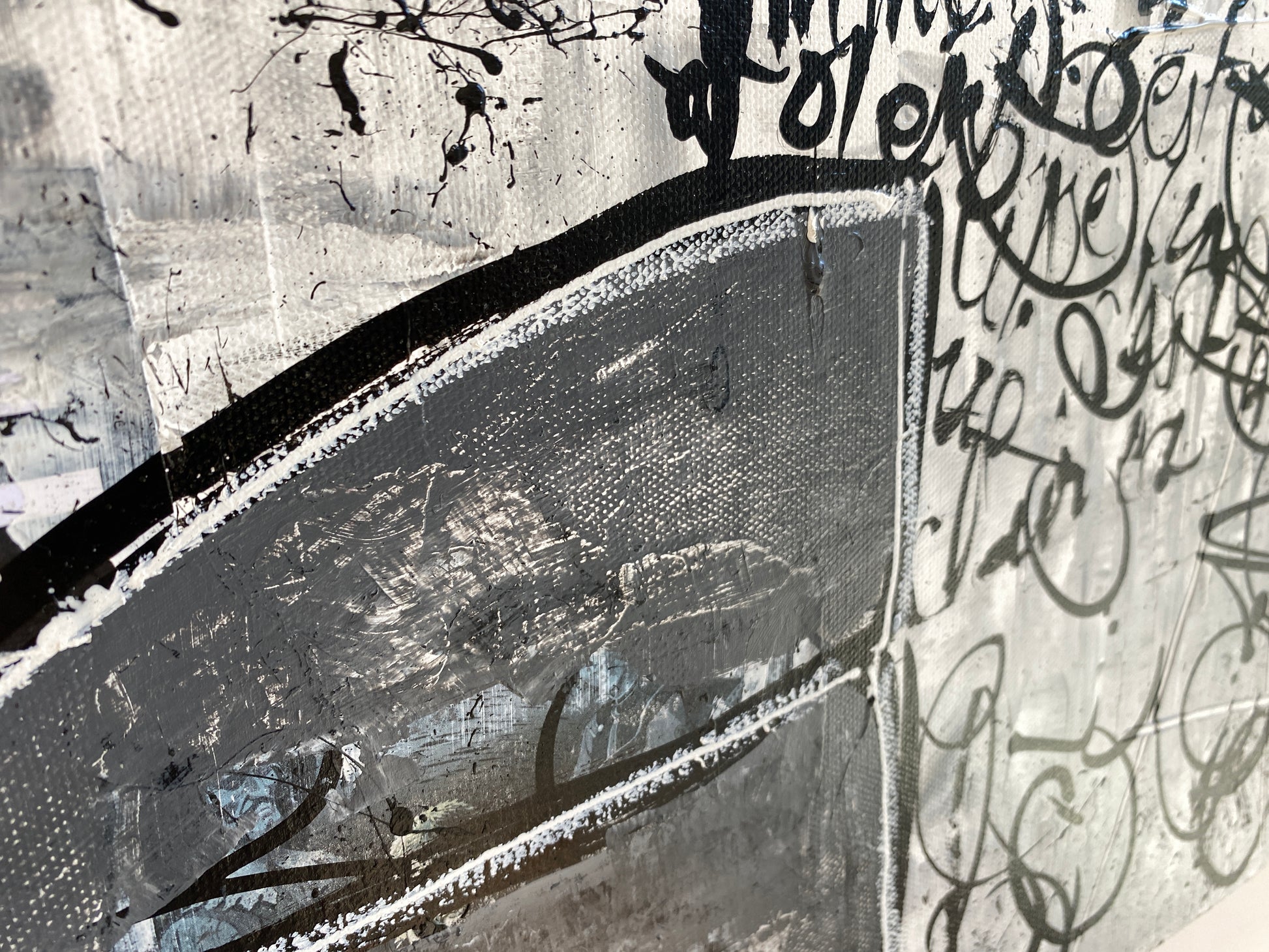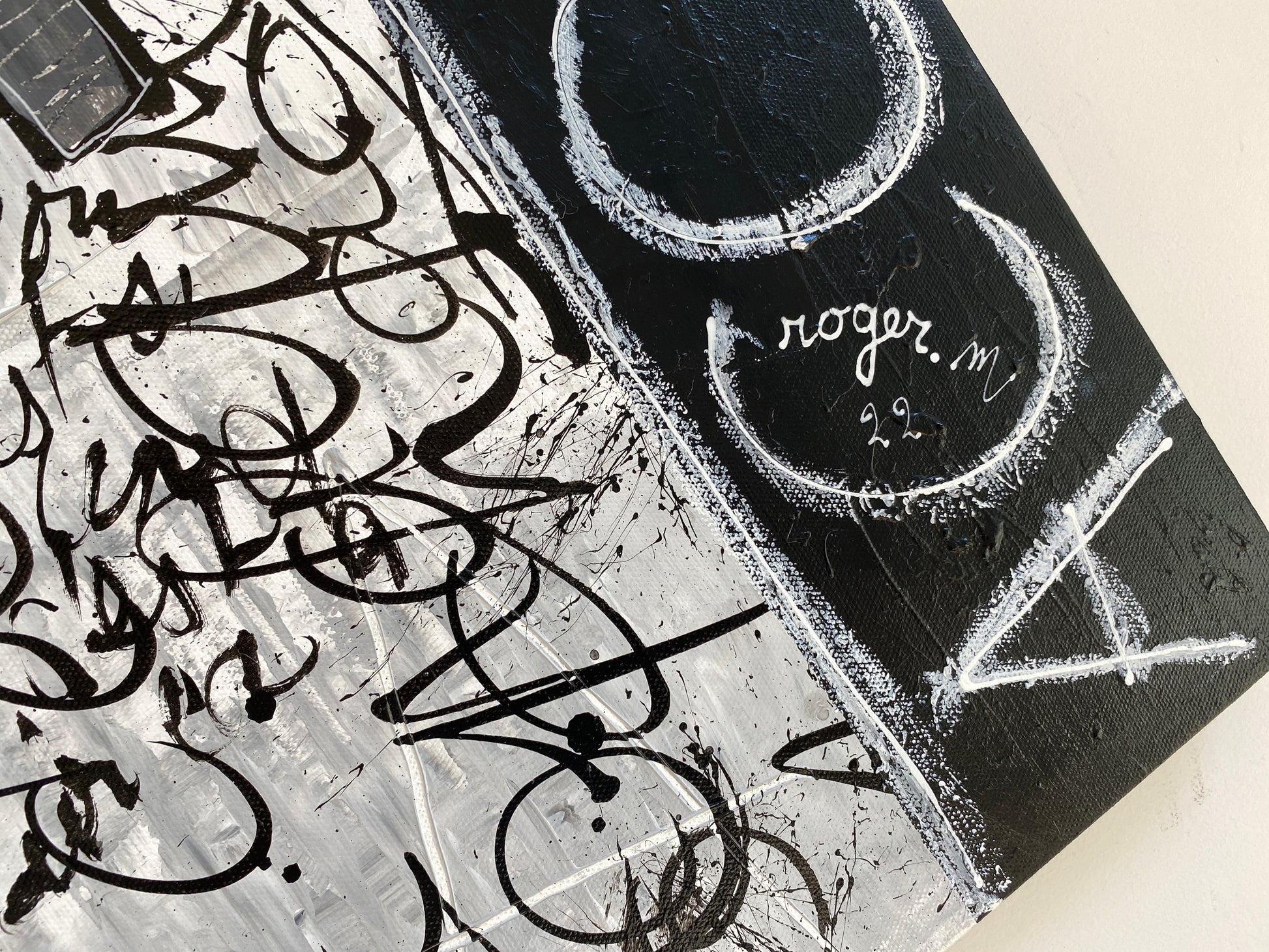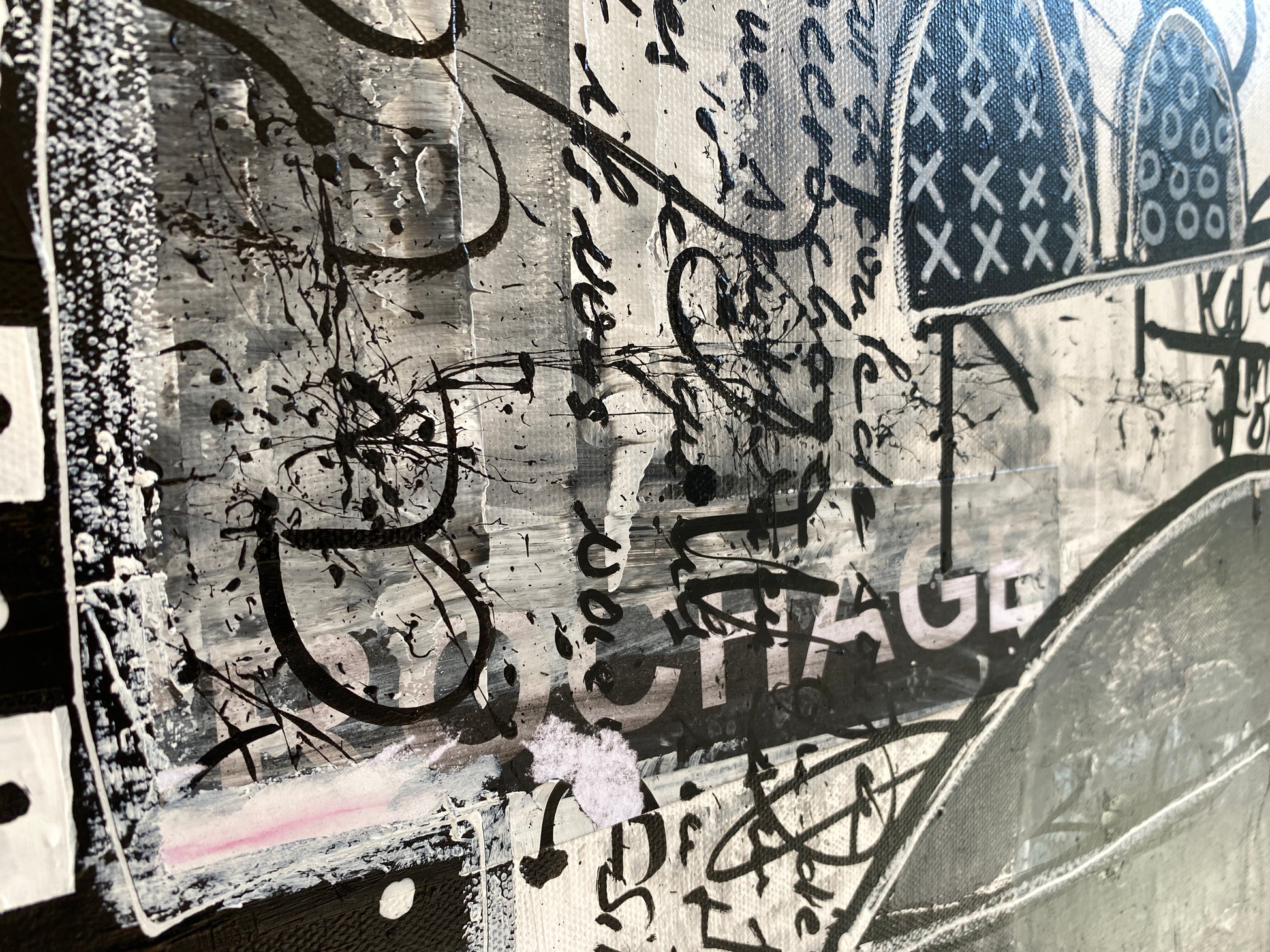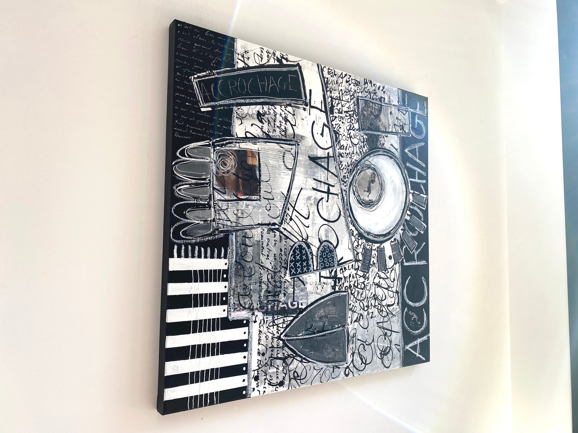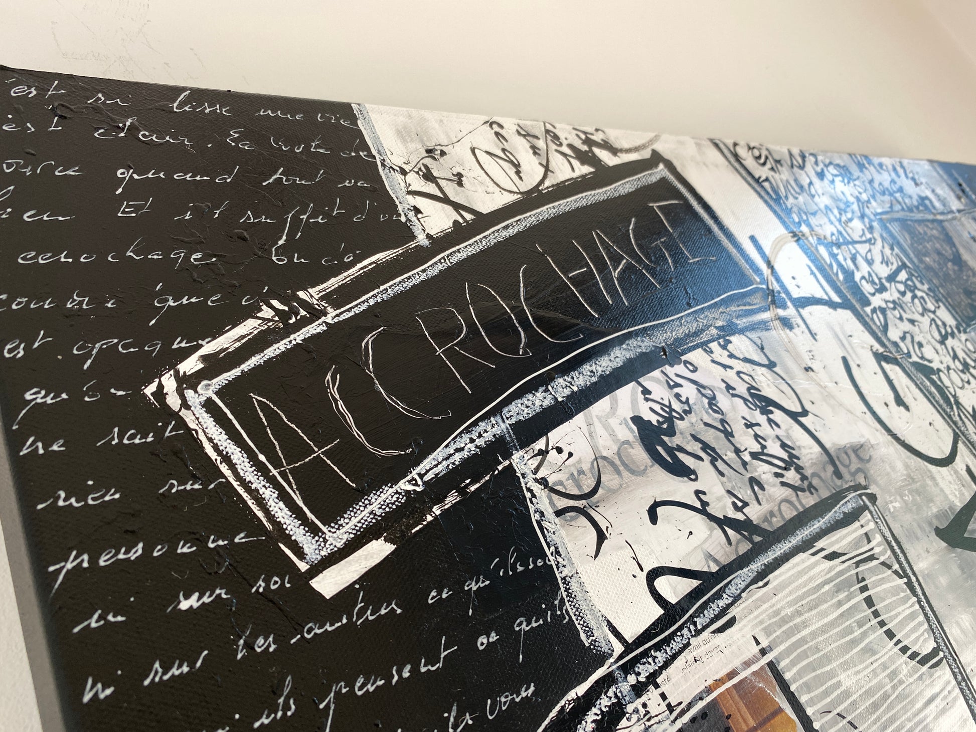 Ce tableau est une exploration viscérale de l'identité, de la mémoire et de l'état d'esprit contemporain. Il traduit une tentative d'ordonner un désordre interne en le fixant sur la toile. Il dégage une énergie brute et existentialiste, où la force du trait et la densité de l'information écrite reflètent l'intensité de la vie mentale. L'œuvre invite le spectateur à plonger dans cette saturation visuelle pour déchiffrer son propre sens dans l'affrontement entre ce que l'on croit savoir et ce que l'on sait au bout du compte.