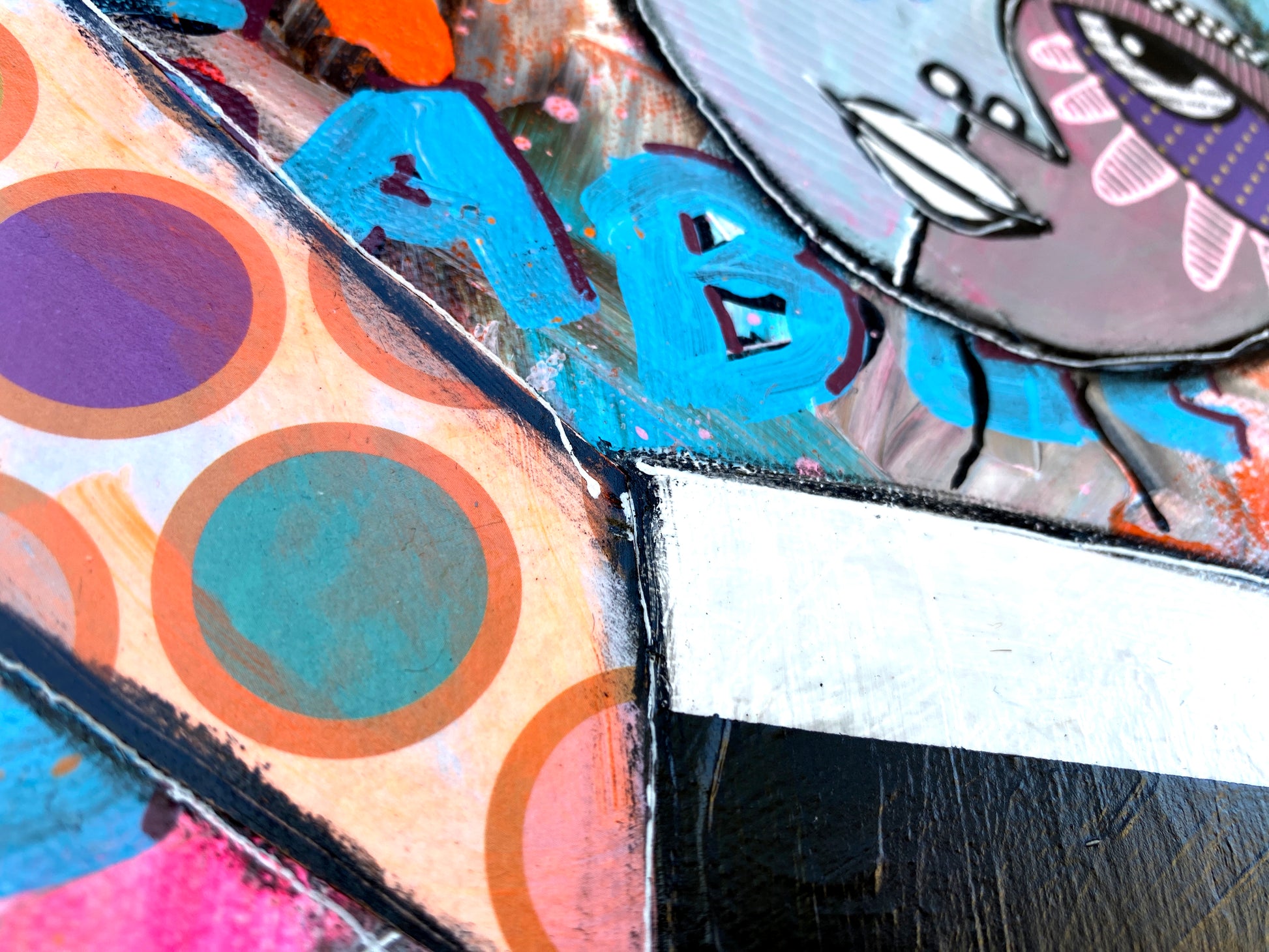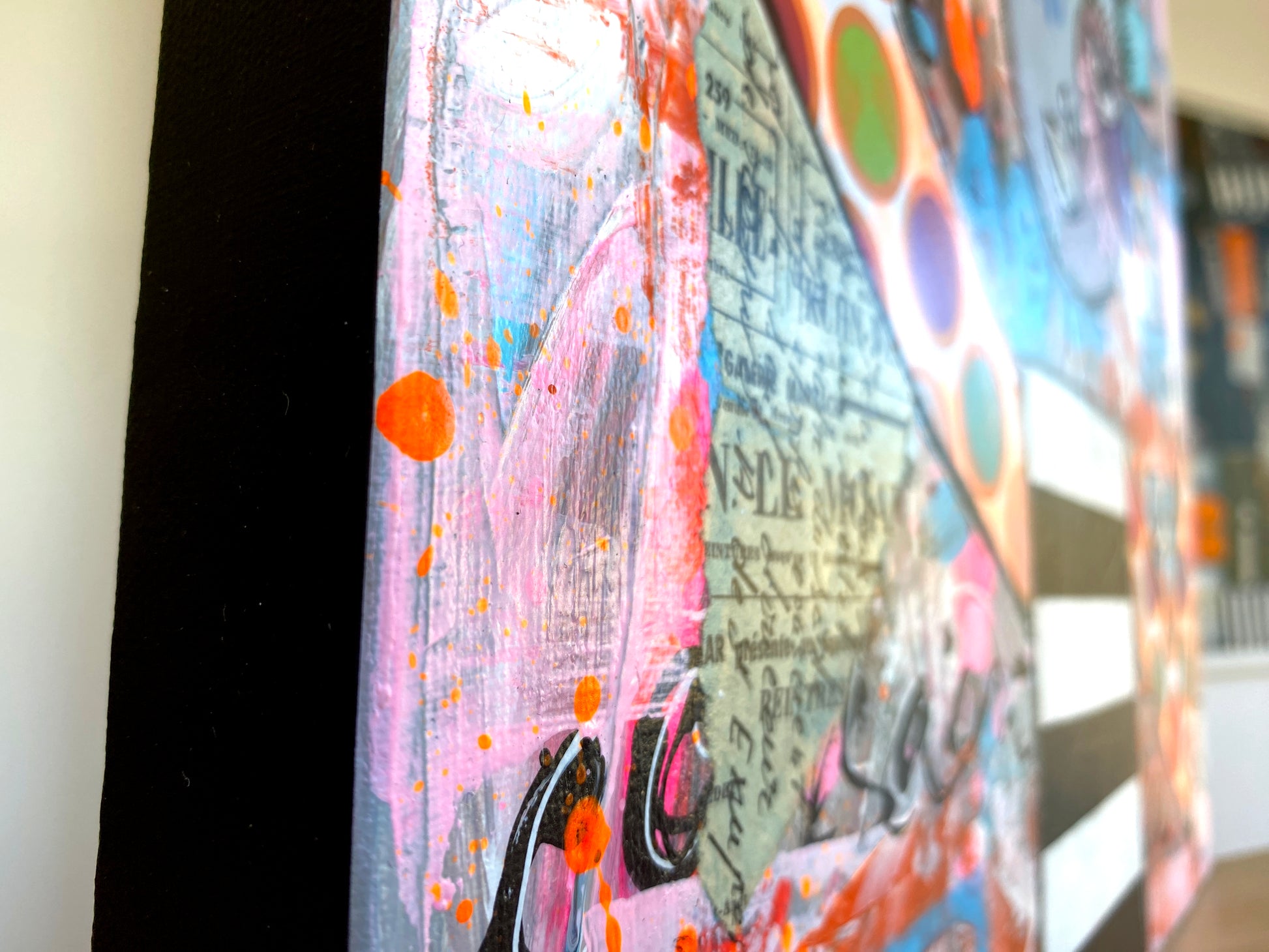 Acrylique, collages et pastel gras sur toile montée sur châssis