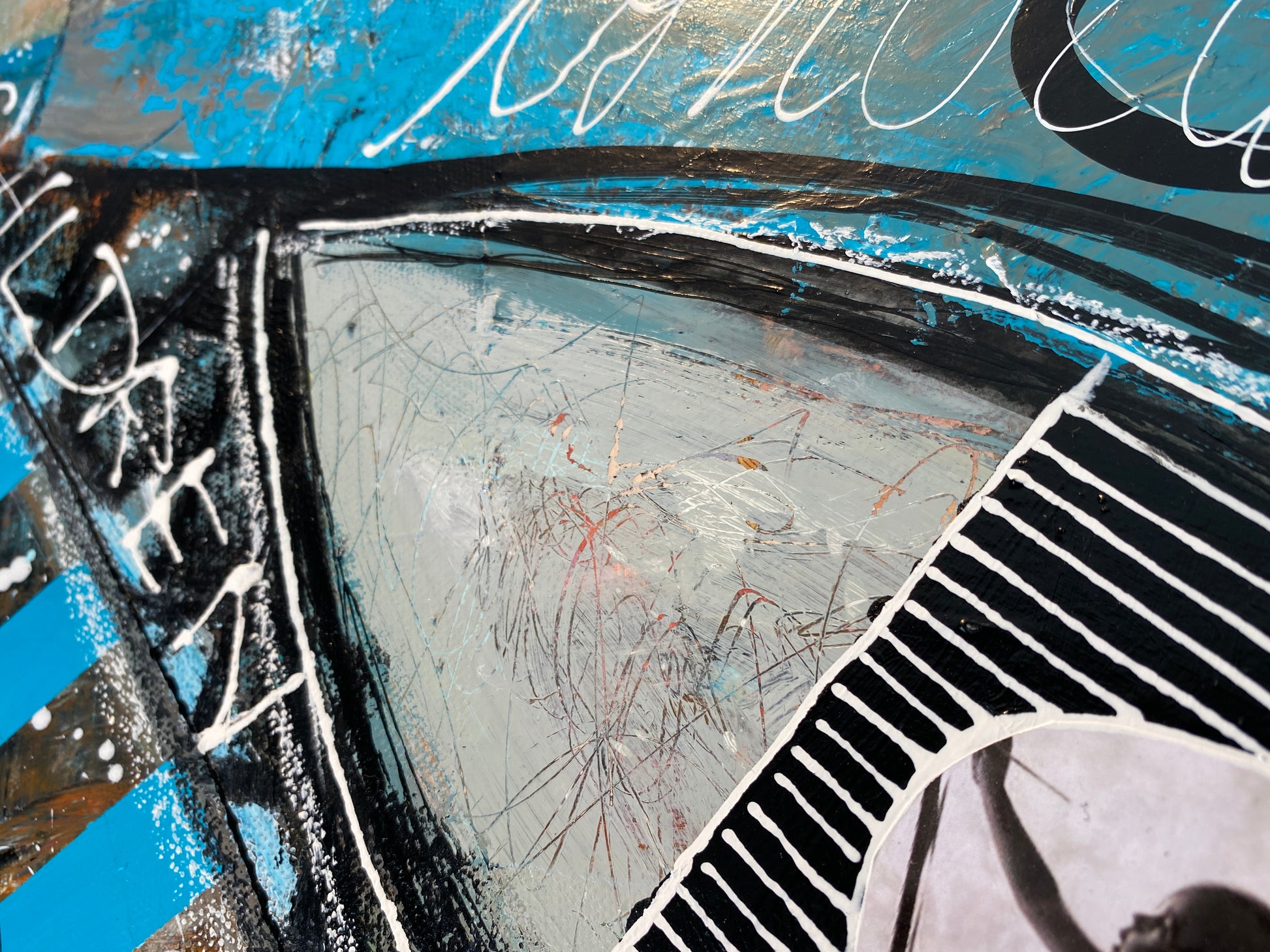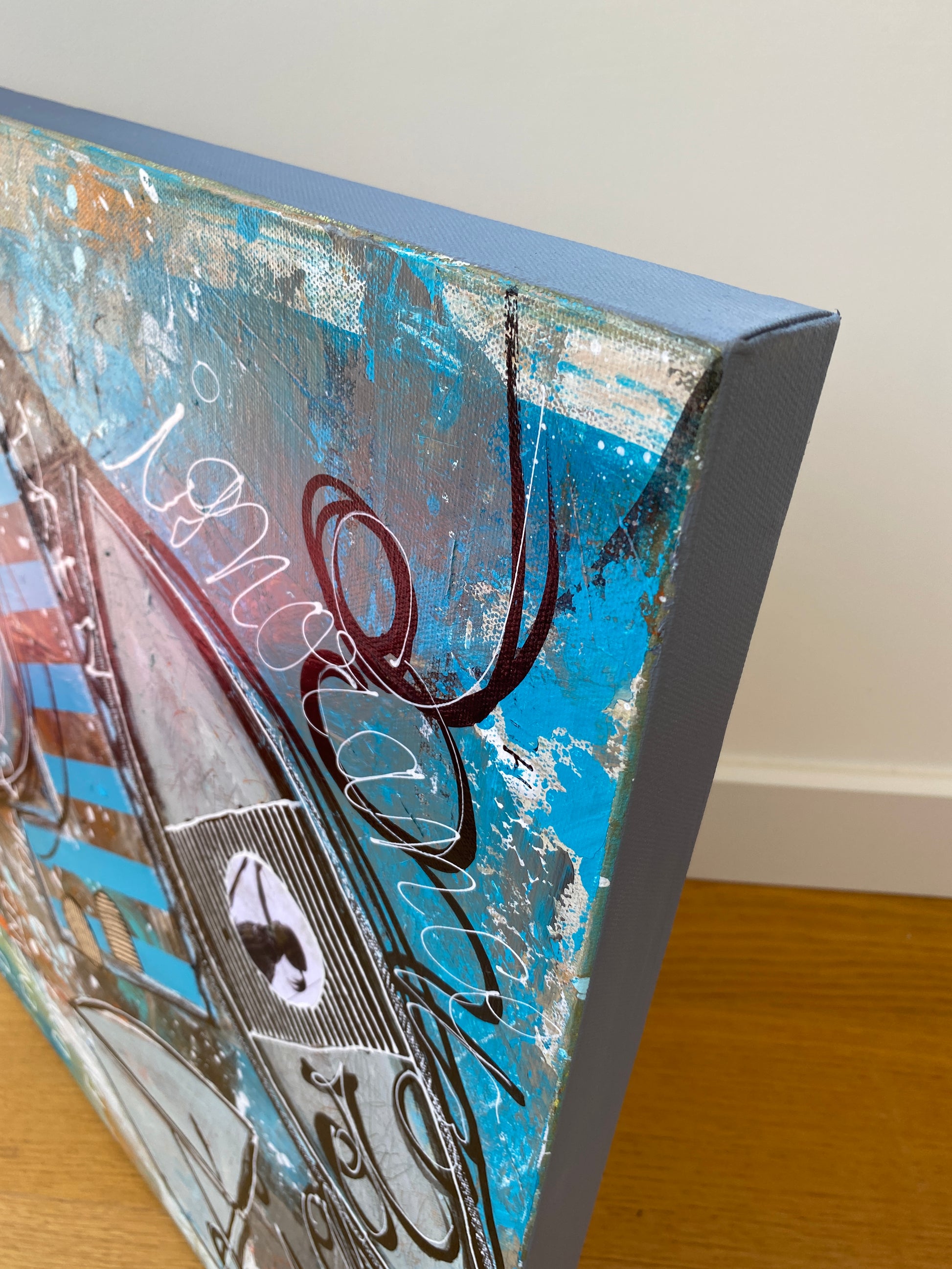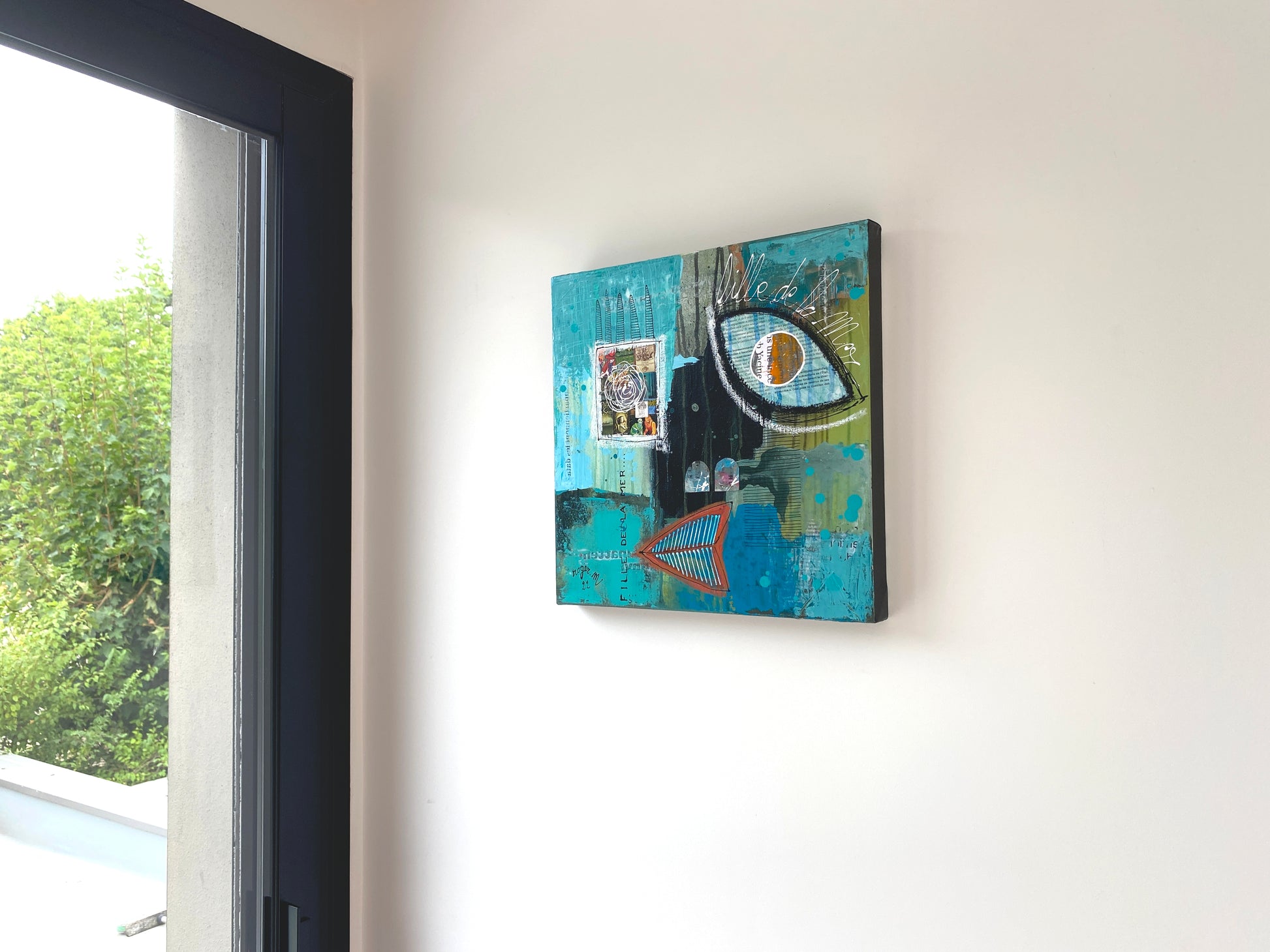Acrylique, encre et collages sur toile montée sur châssis