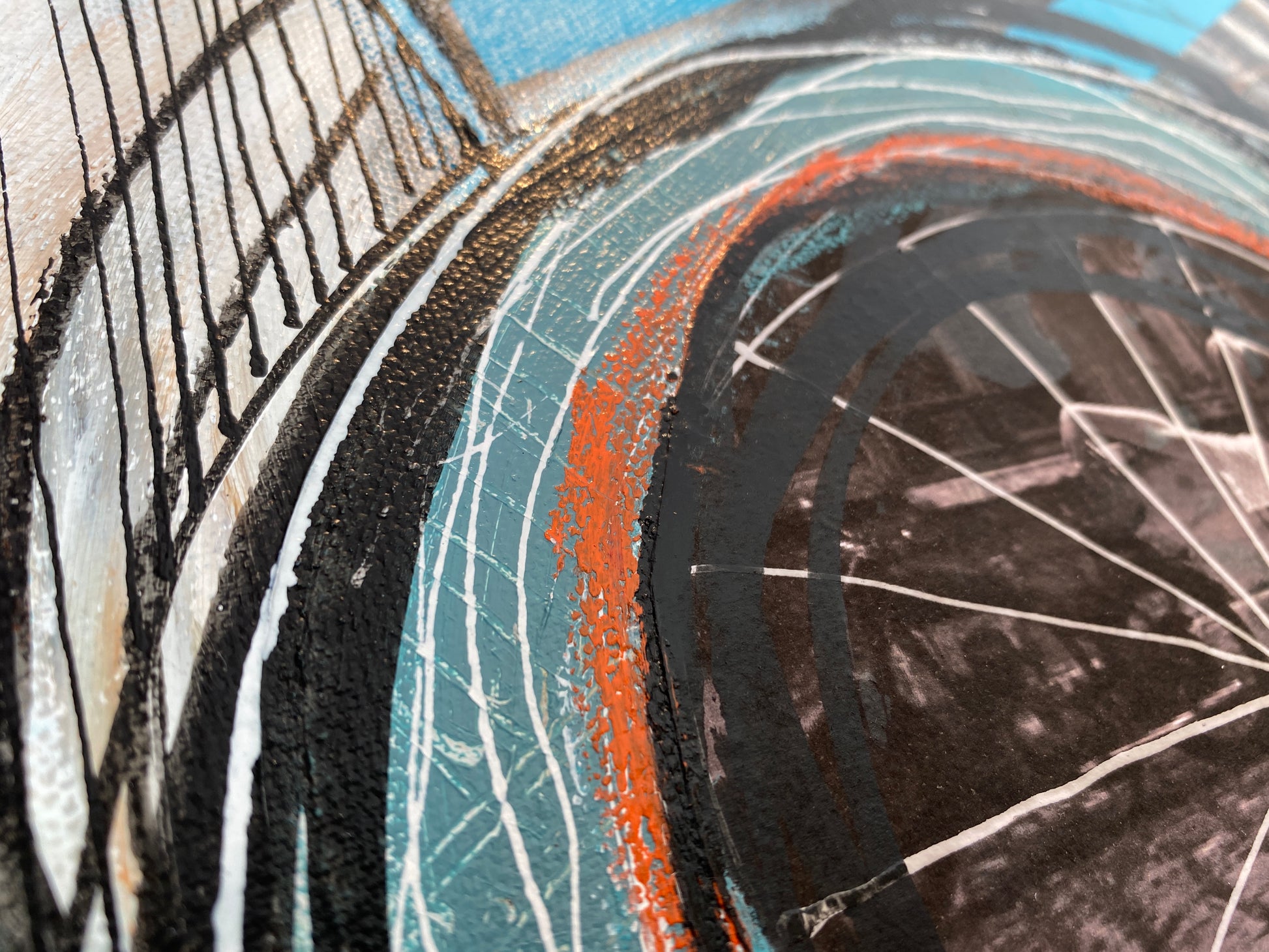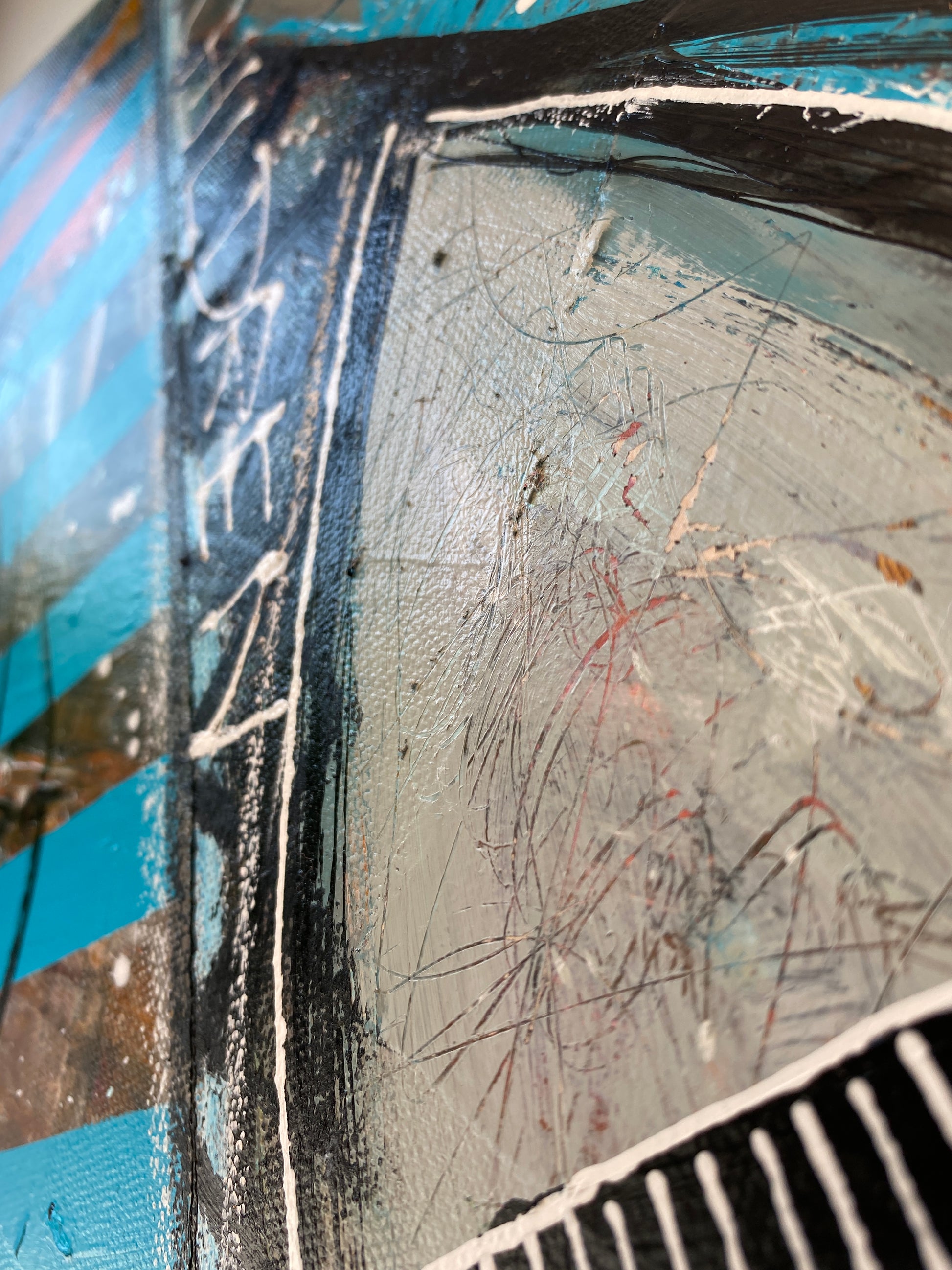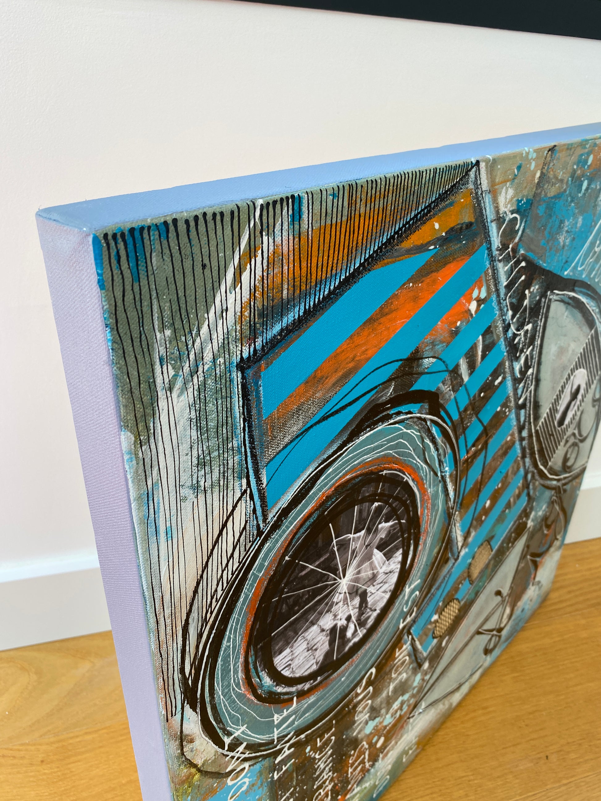 Acrylique, encre et collages sur toile montée sur châssis