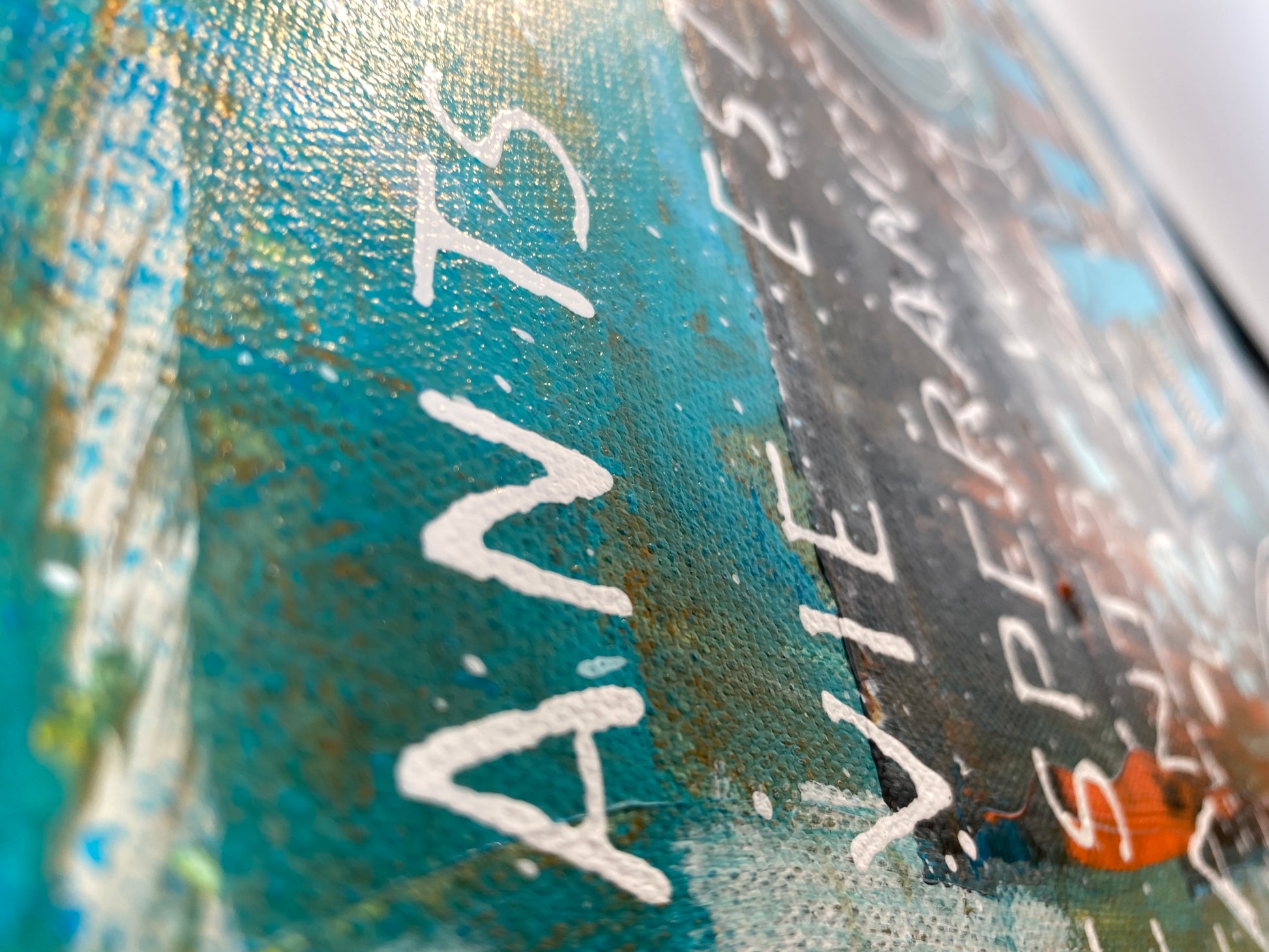 C'est une peinture qui interpelle et qui superpose les techniques pour exprimer une émotion brute et un message positif, typique de l'art contemporain qui n'hésite pas à mélanger les registres et les matériaux.