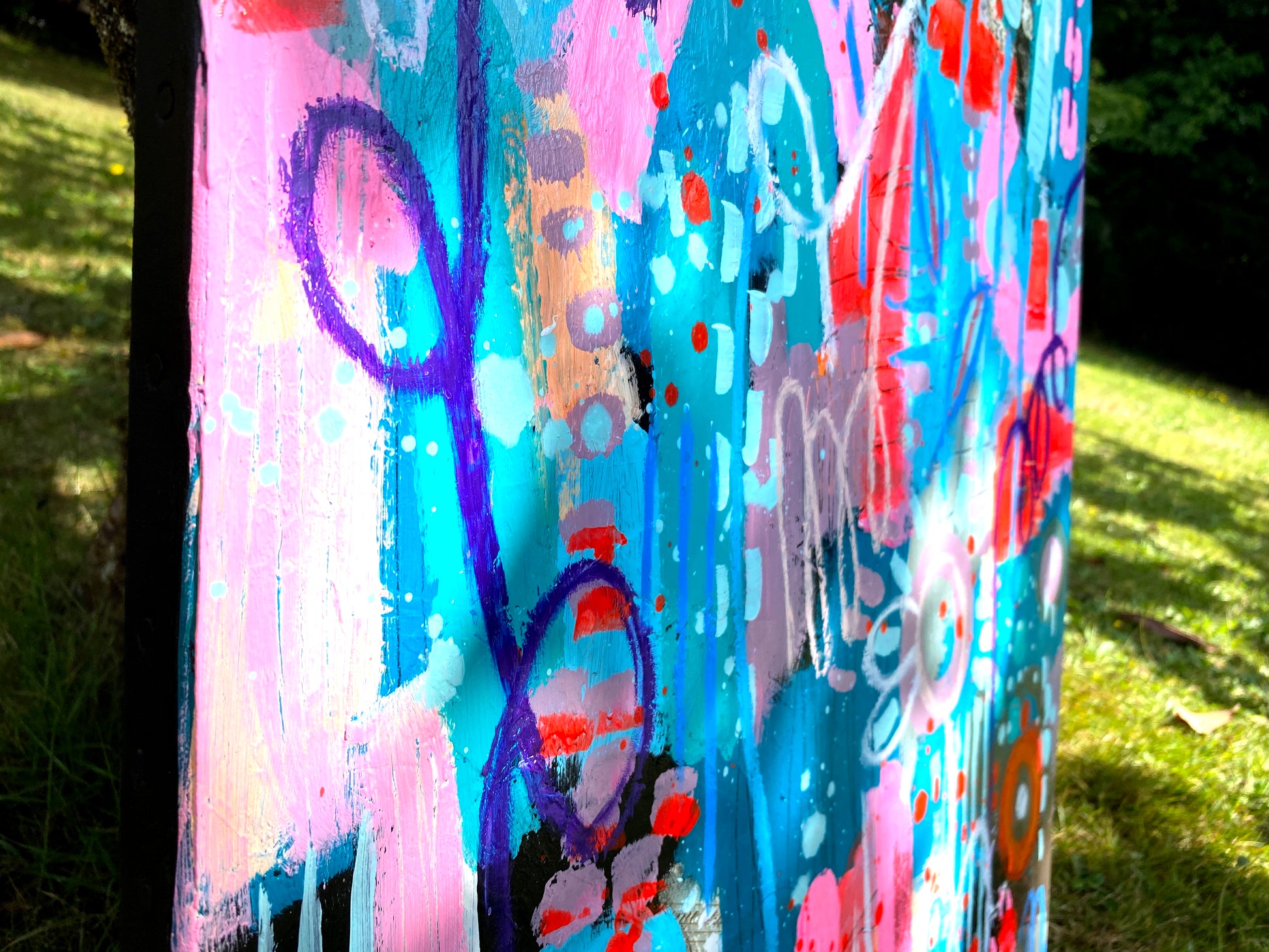 L'œuvre transpose le thème naturel des « fleurs sauvages » dans une représentation purement émotionnelle et sensorielle. Il ne s'agit pas de reproduire les formes florales, mais de capturer l'éclosion, la vitalité, et l'entremêlement exubérant d'un parterre de fleurs. J'explore l'interaction des couleurs et des harmonies, faisant du sujet un prétexte pour une exploration chromatique et gestuelle joyeuse.