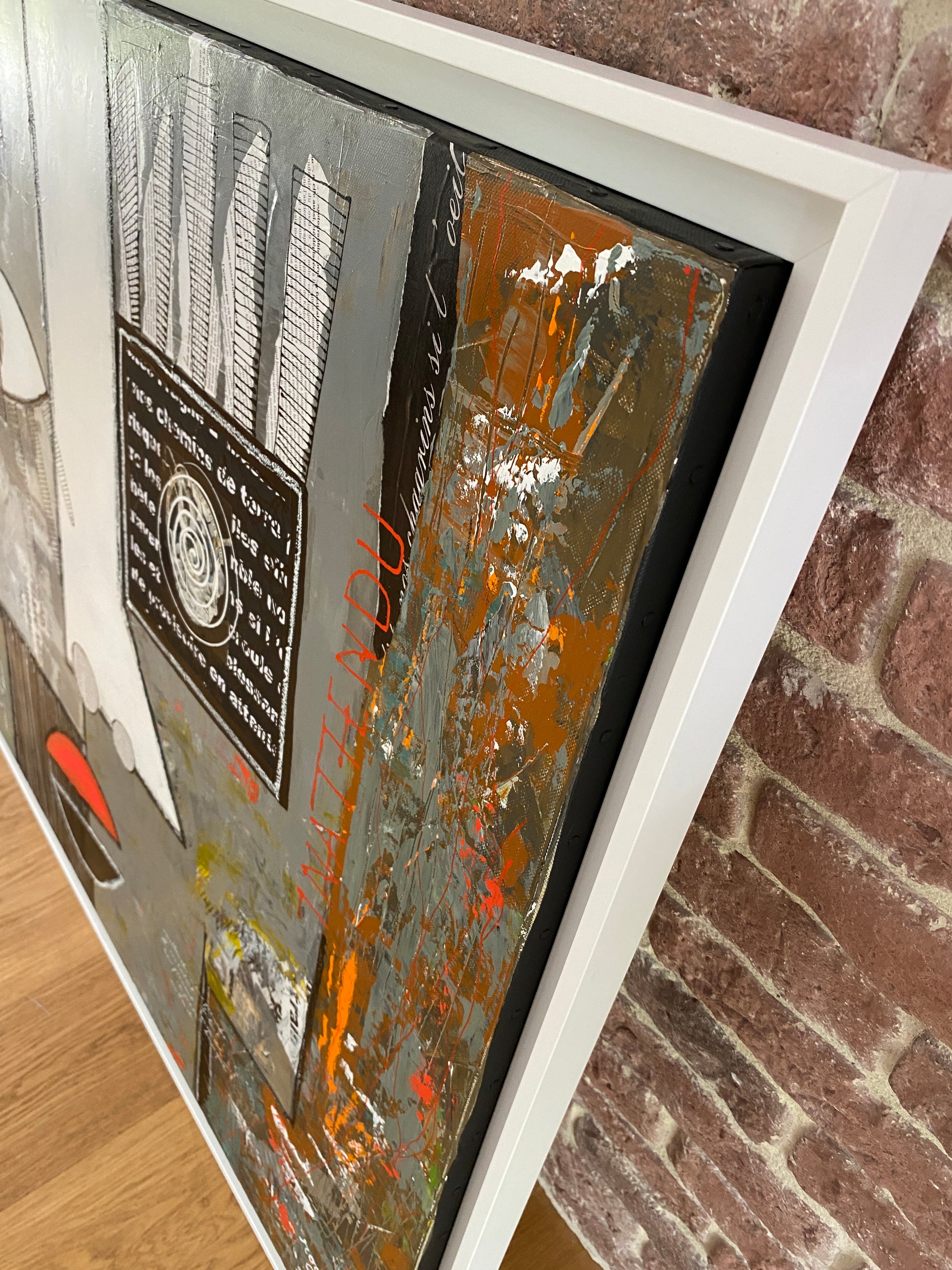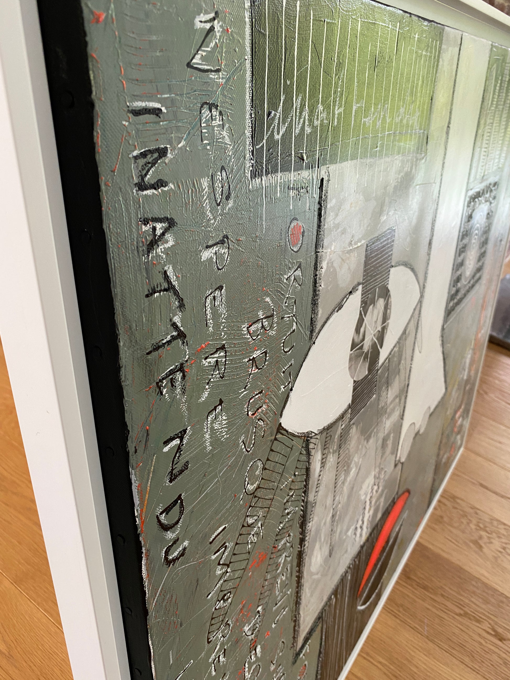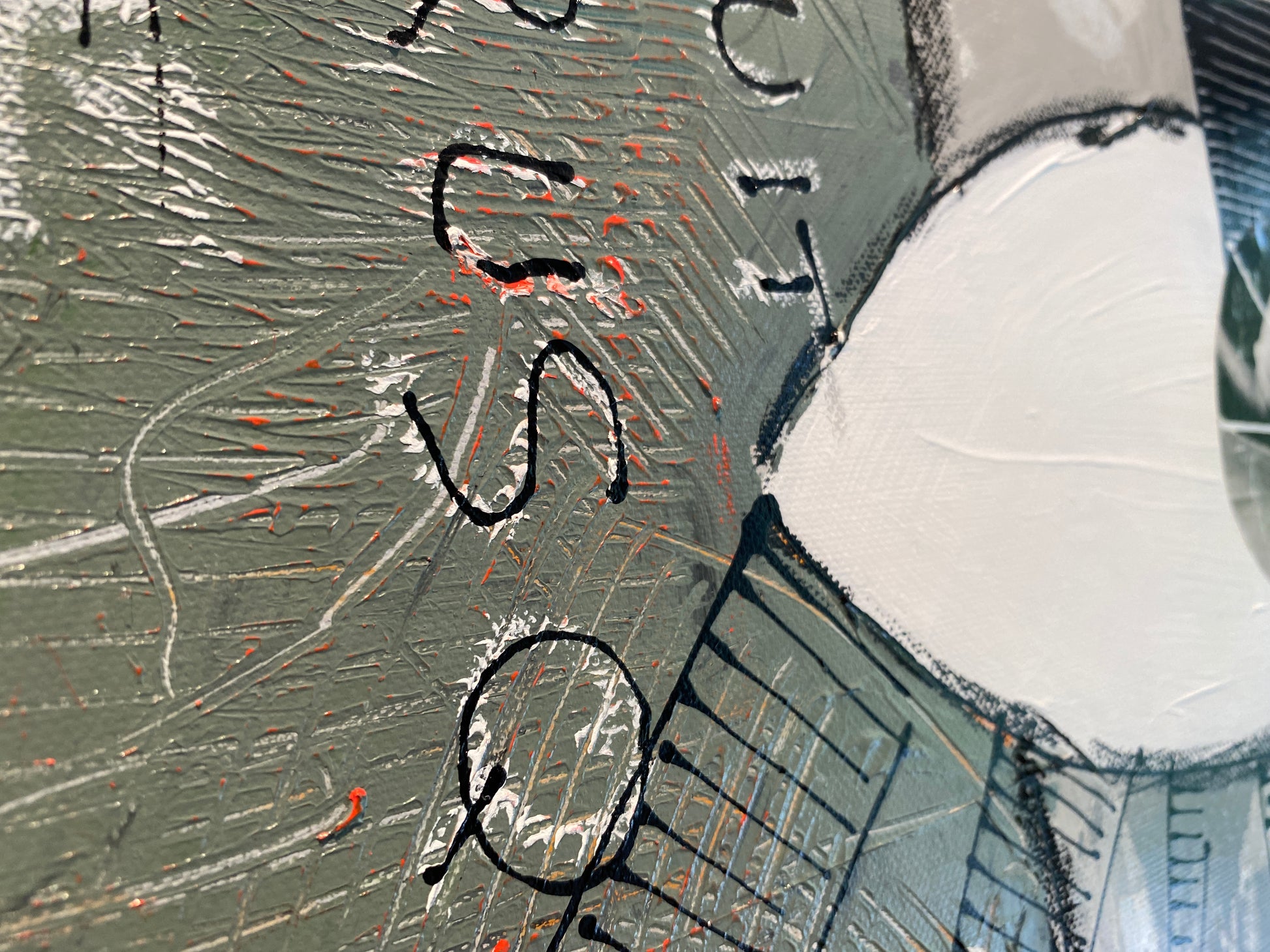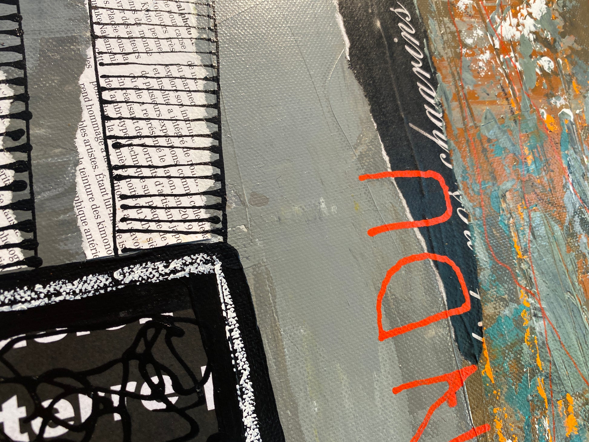 Oeuvre réalisée à l'acrylique avec graffitis et collages