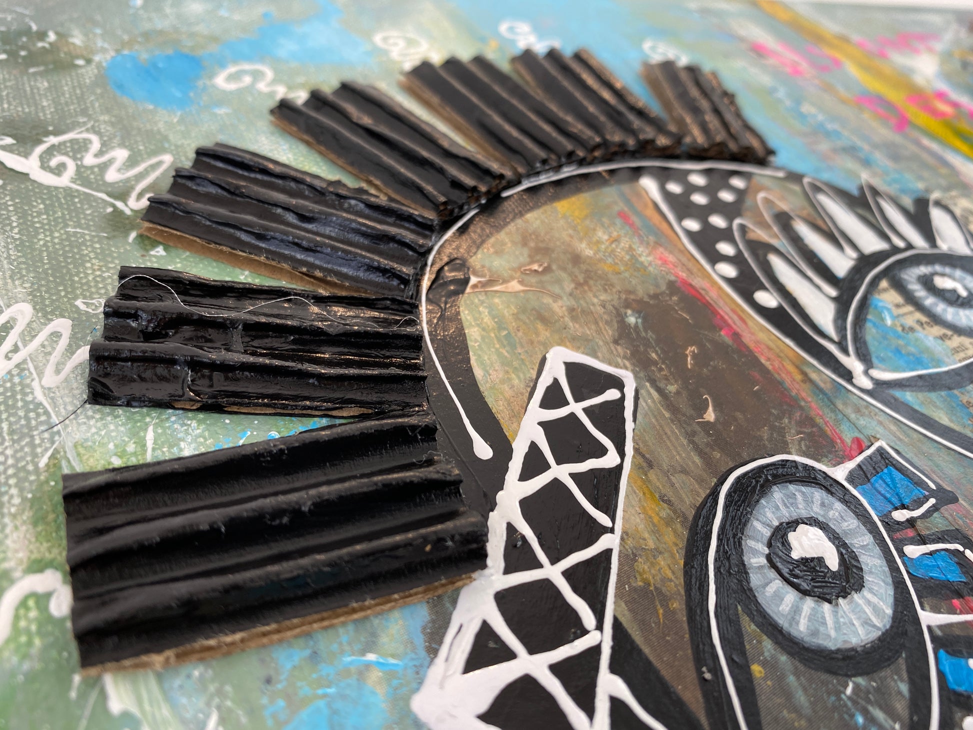 Acrylique et collages sur toile montée sur châssis