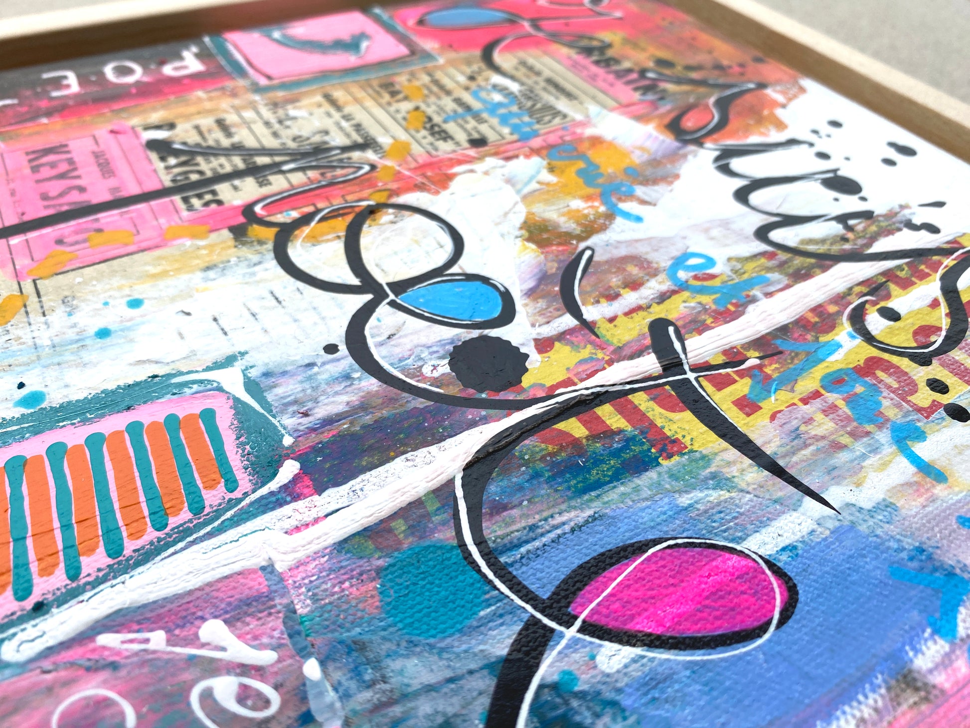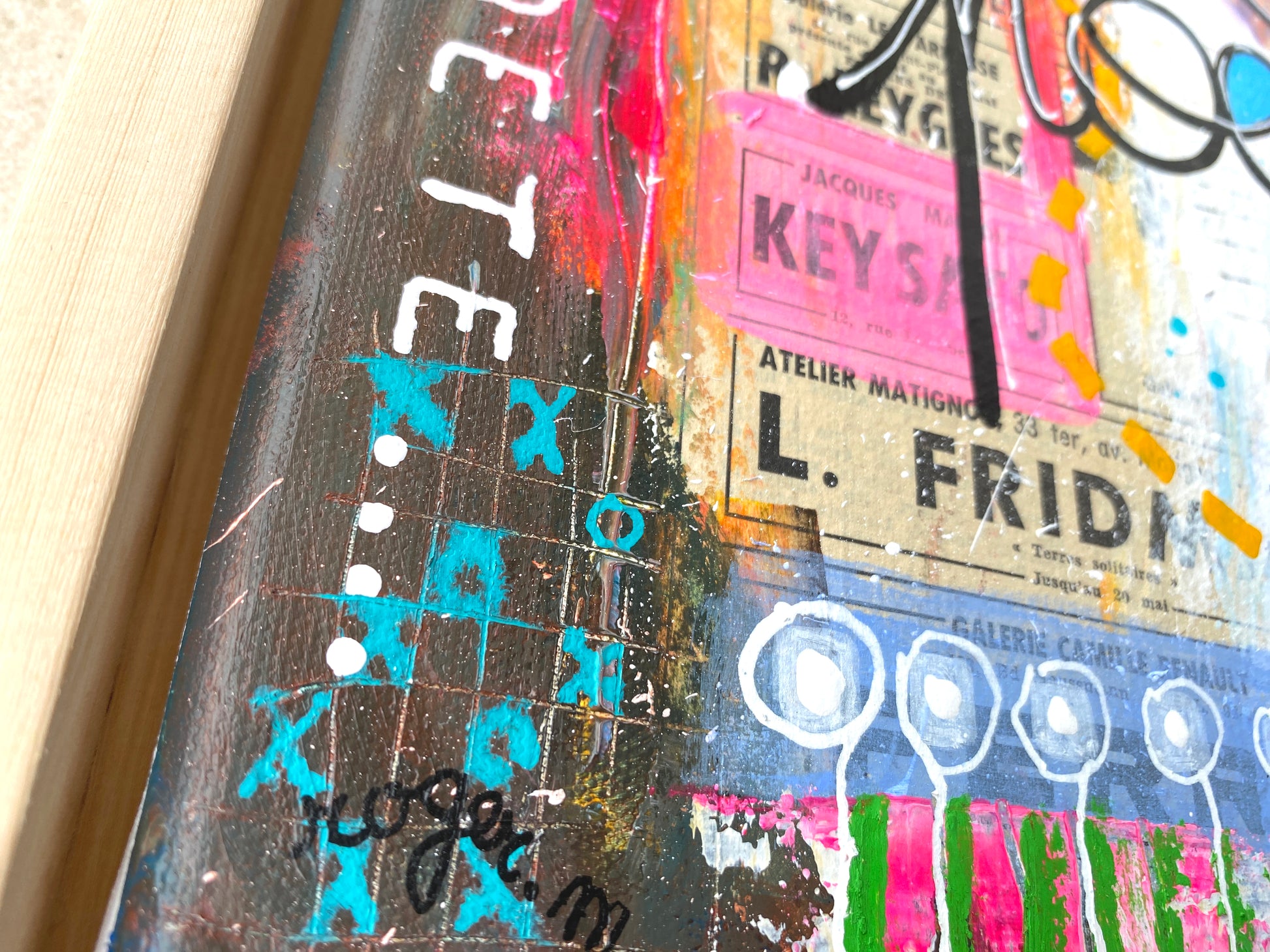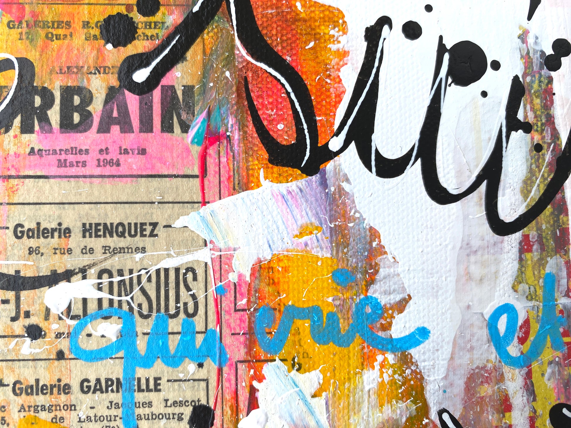 Acrylique et collages sur toile montée sur châssis