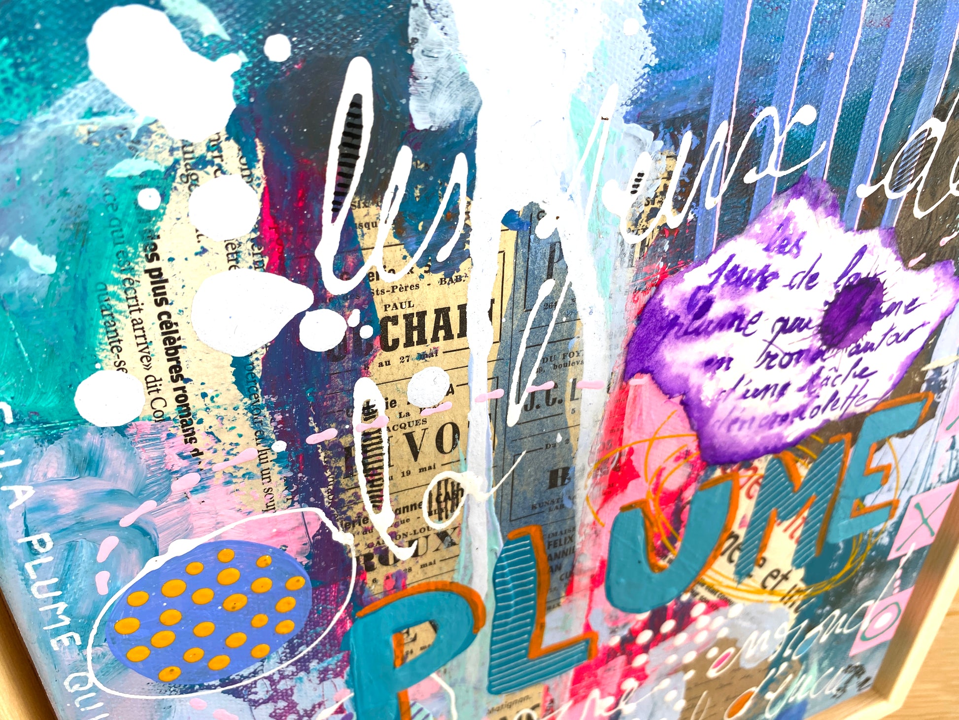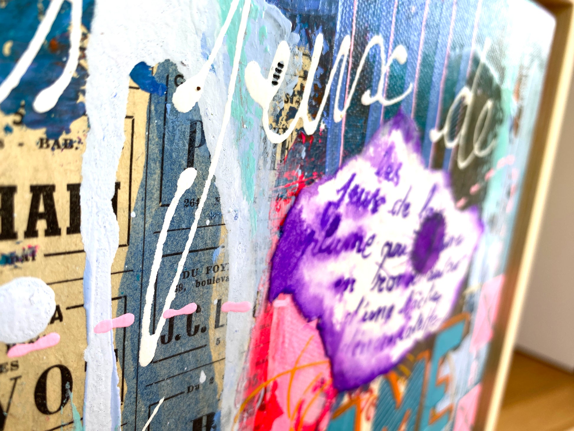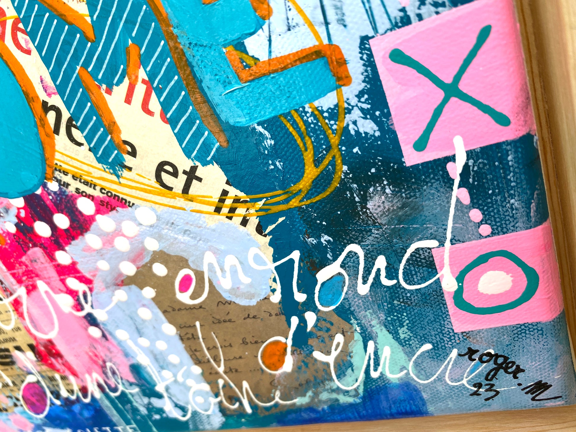 Acrylique et collages sur toile montée sur châssis