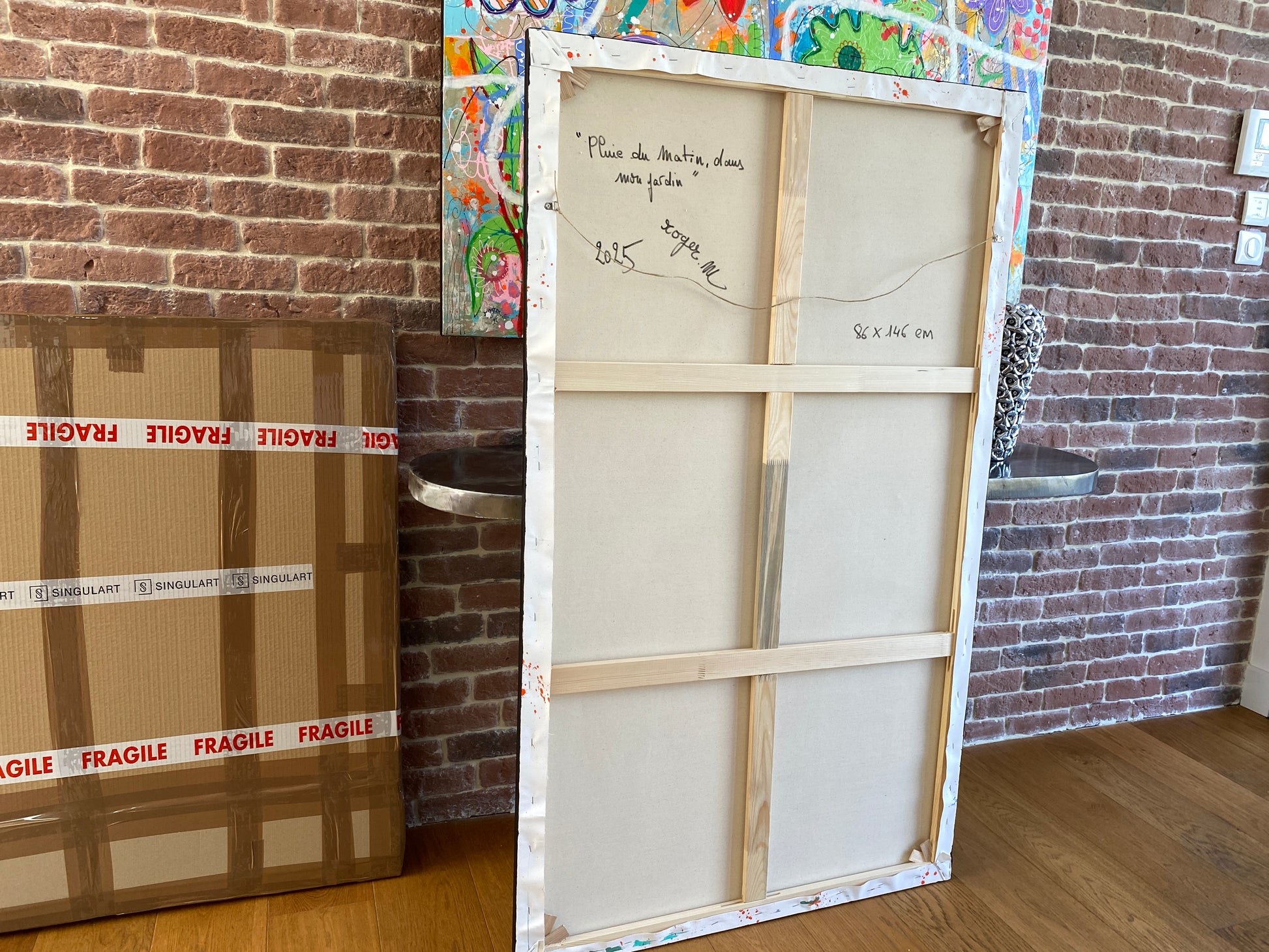 Pluie du Matin dans mon jardin - 146 x 86 cm -