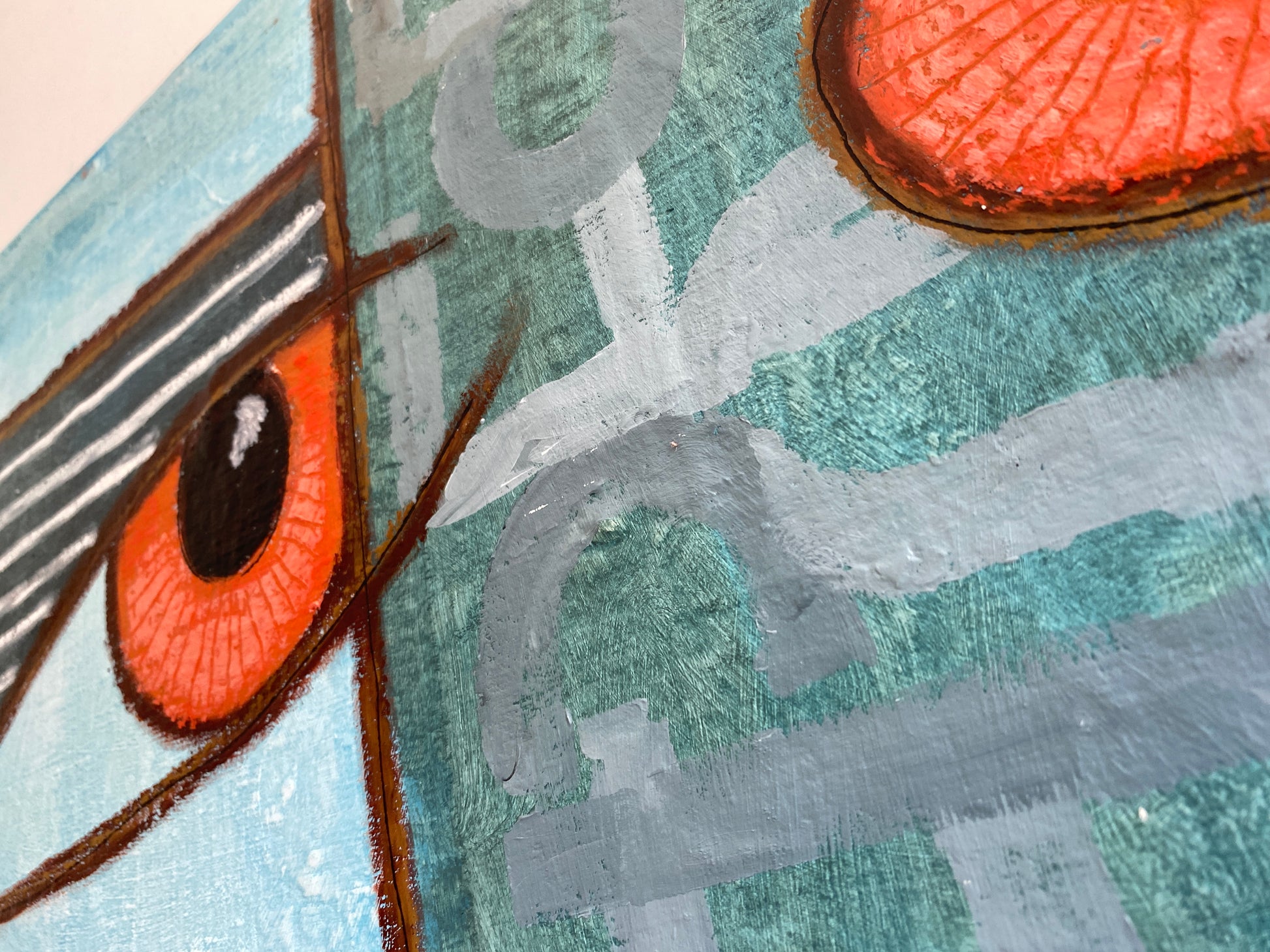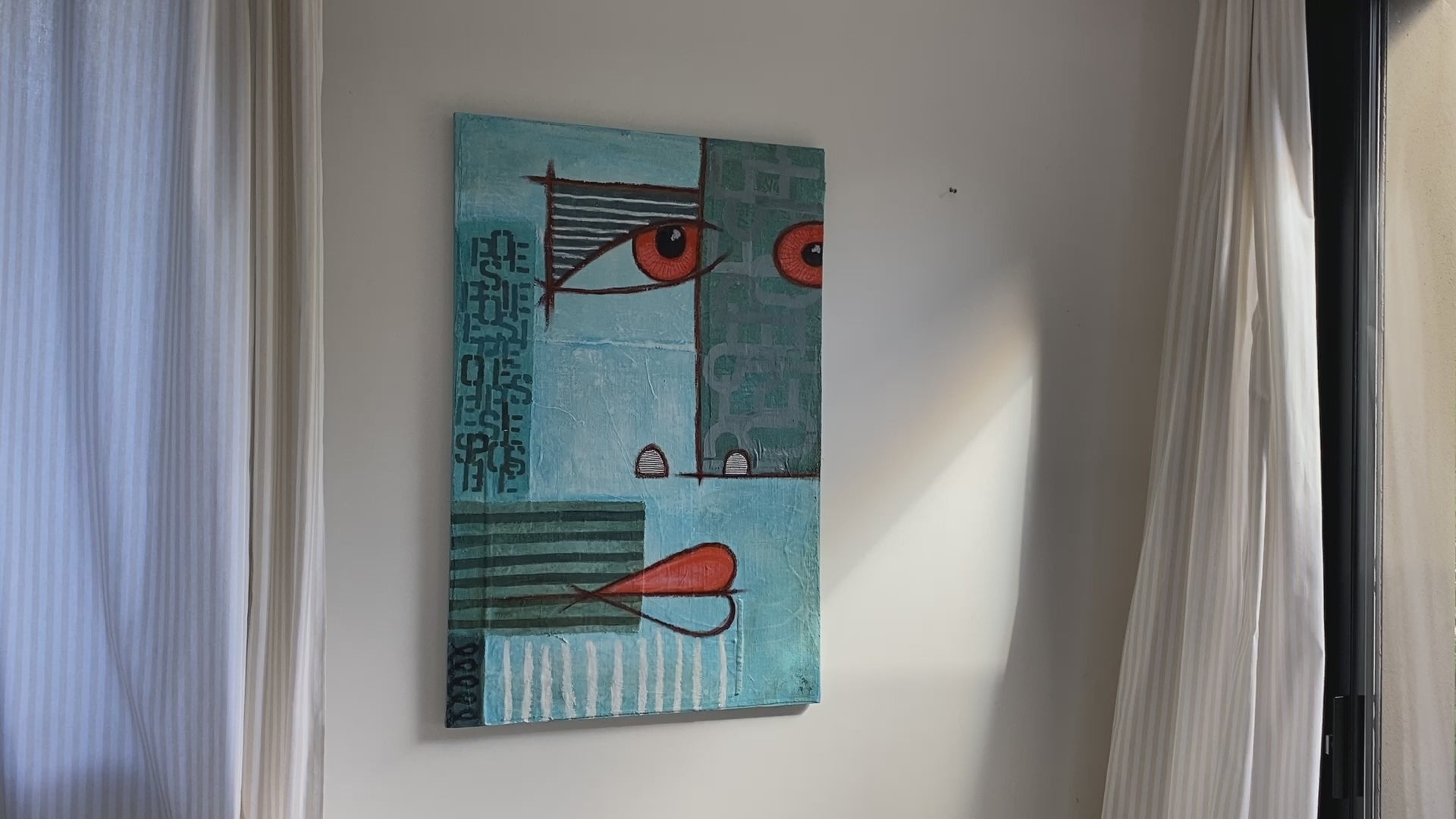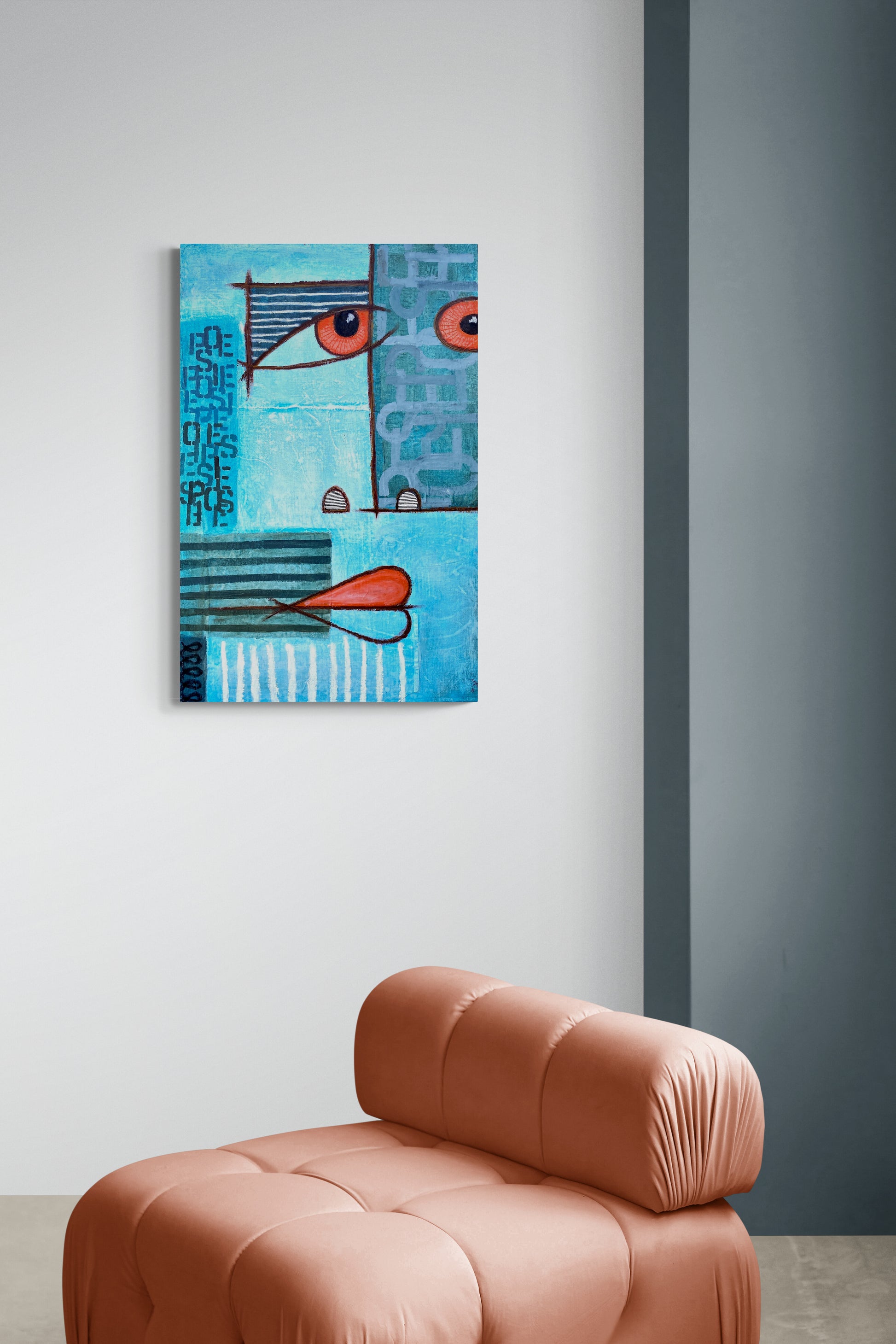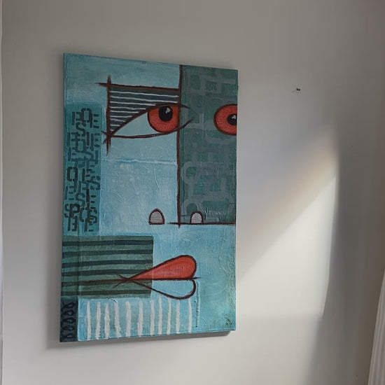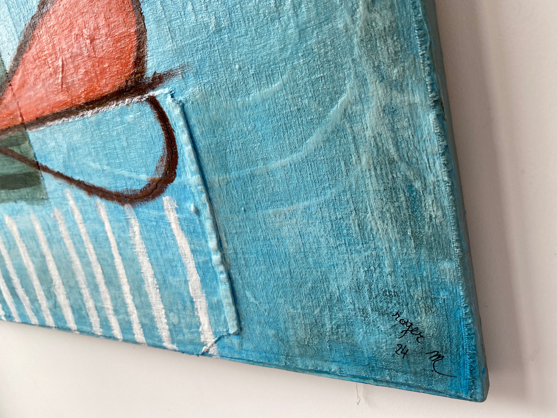 L'œuvre s'inscrit dans l'art contemporain, avec un style coloré, graphique, naïf et fortement texturé. Elle utilise l'abstraction et la géométrisation pour créer un portrait émotionnel et poétique. Les contrastes de couleur, notamment entre les bleus et l'orange vif, confèrent à l'œuvre une grande énergie et une présence visuelle marquante.
