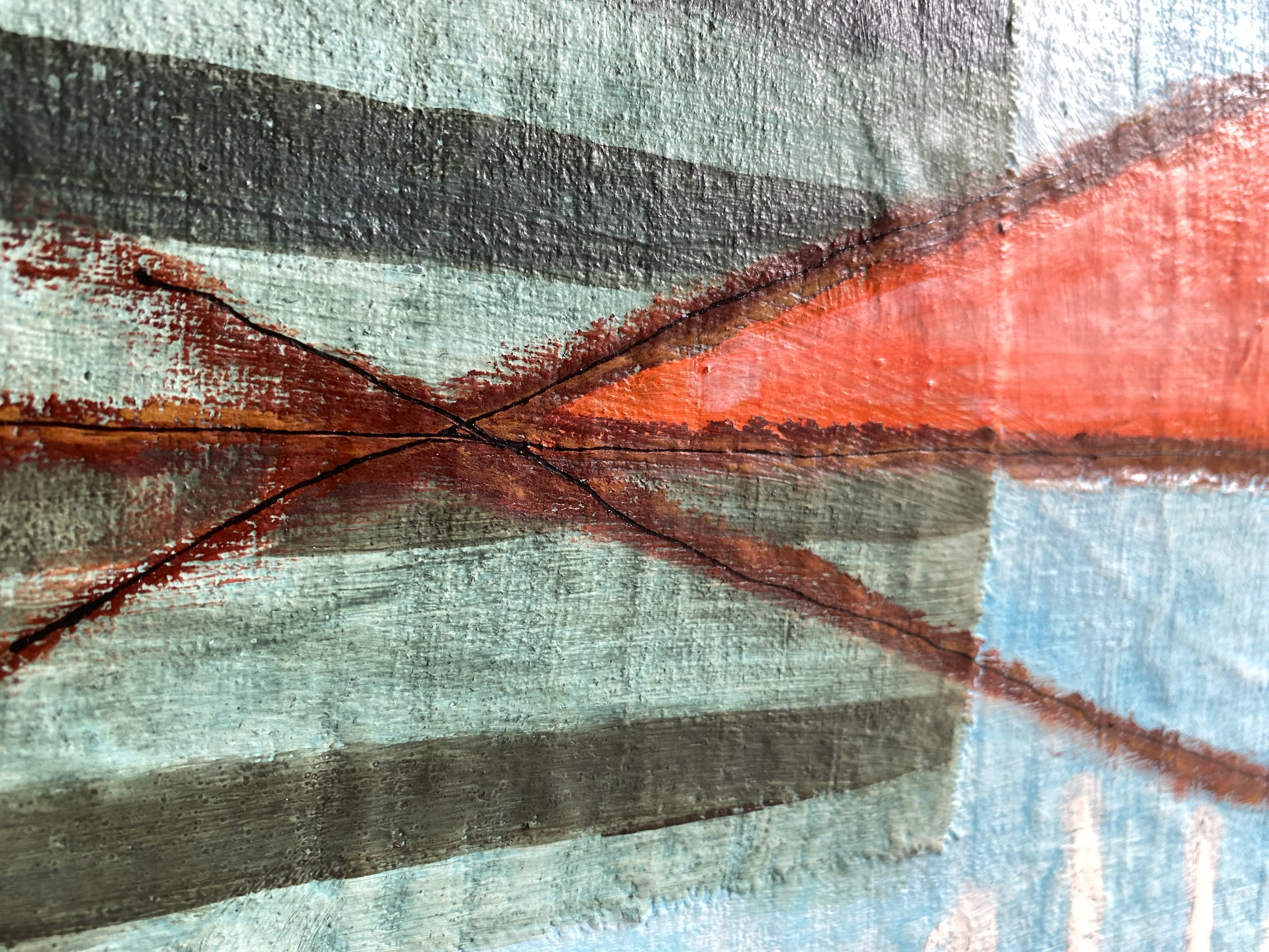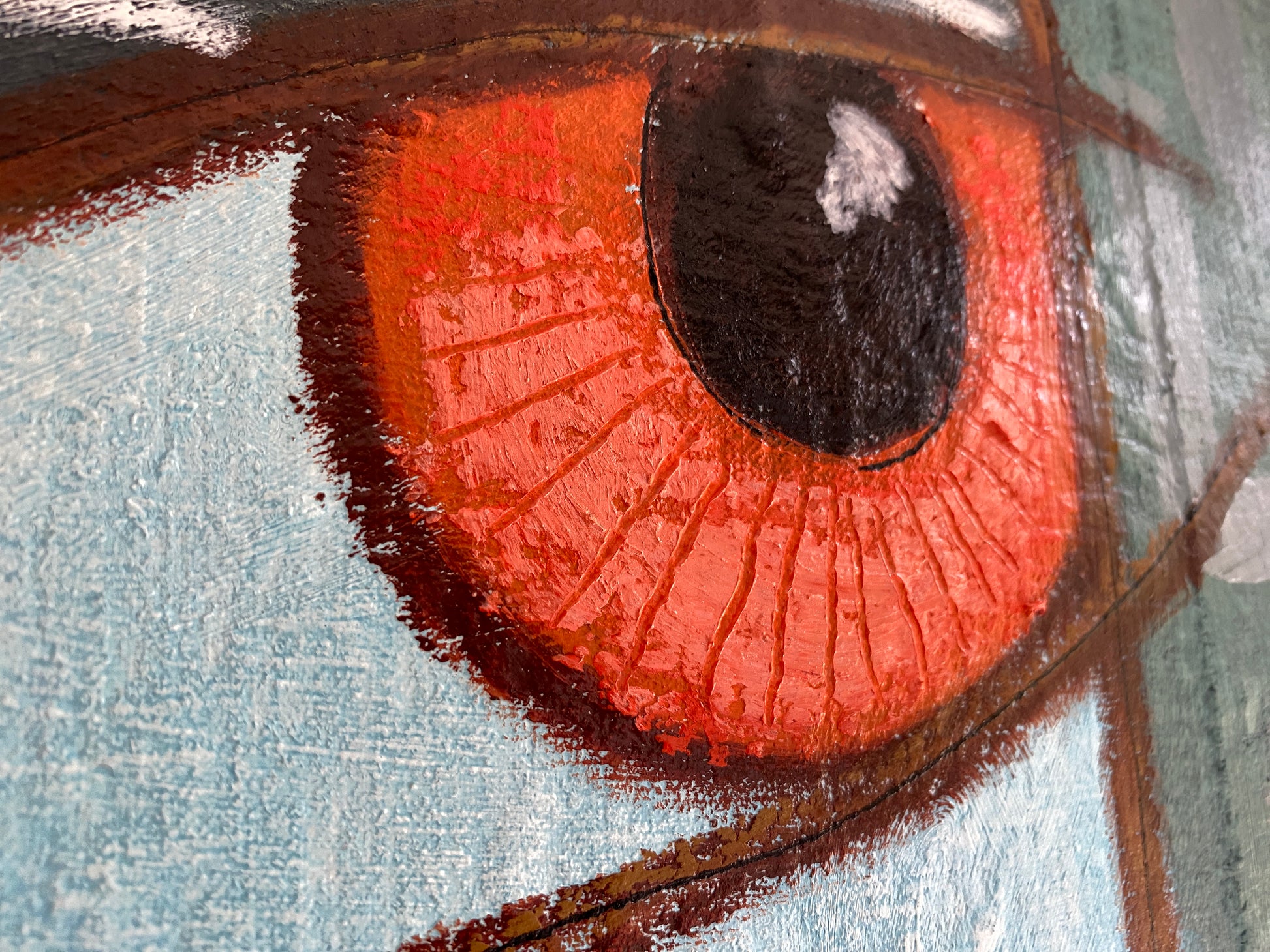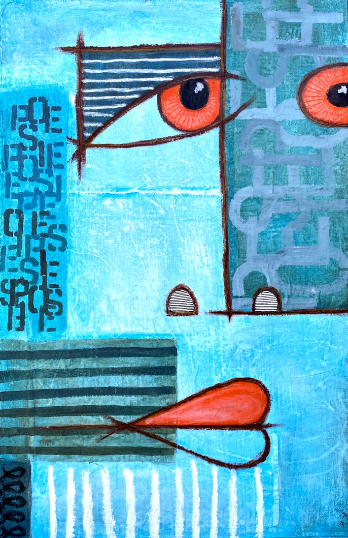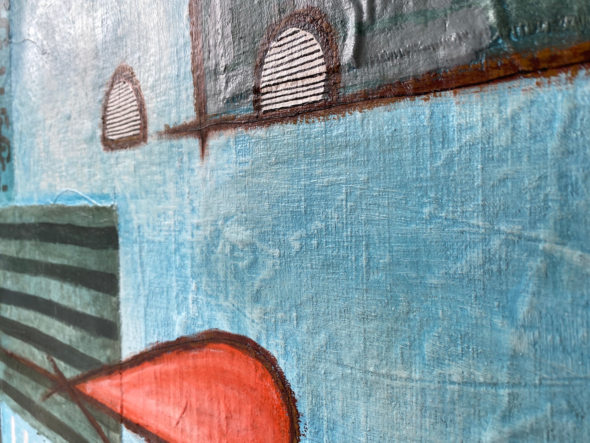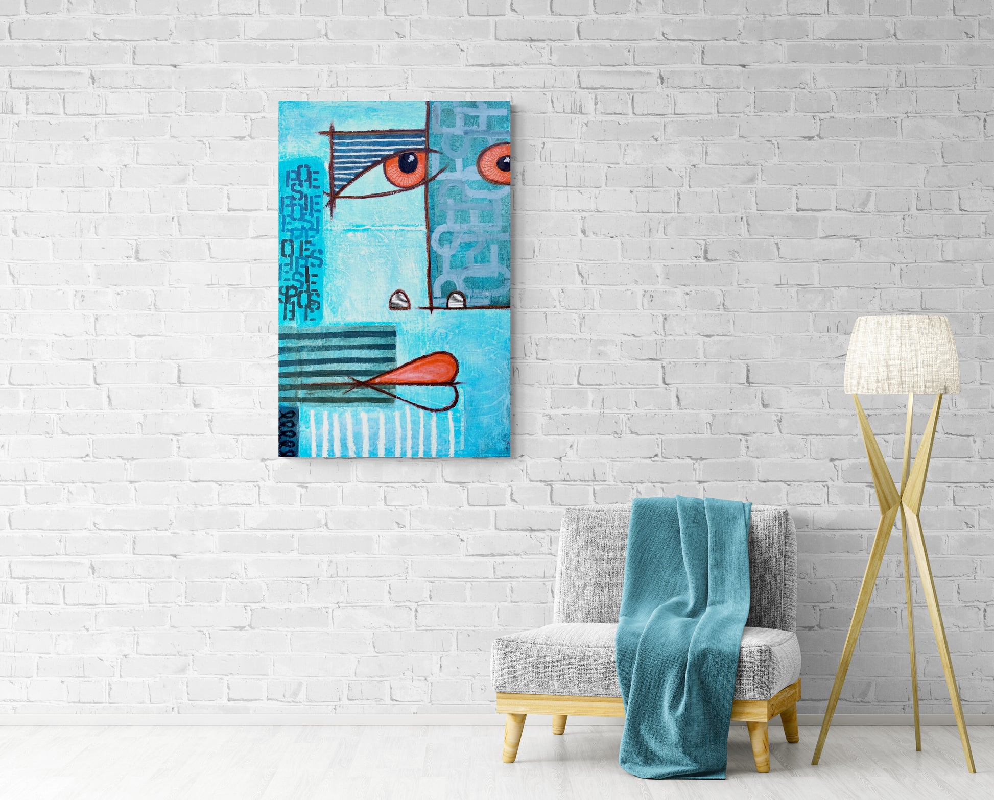 L'œuvre s'inscrit dans l'art contemporain, avec un style coloré, graphique, naïf et fortement texturé. Elle utilise l'abstraction et la géométrisation pour créer un portrait émotionnel et poétique. Les contrastes de couleur, notamment entre les bleus et l'orange vif, confèrent à l'œuvre une grande énergie et une présence visuelle marquante.