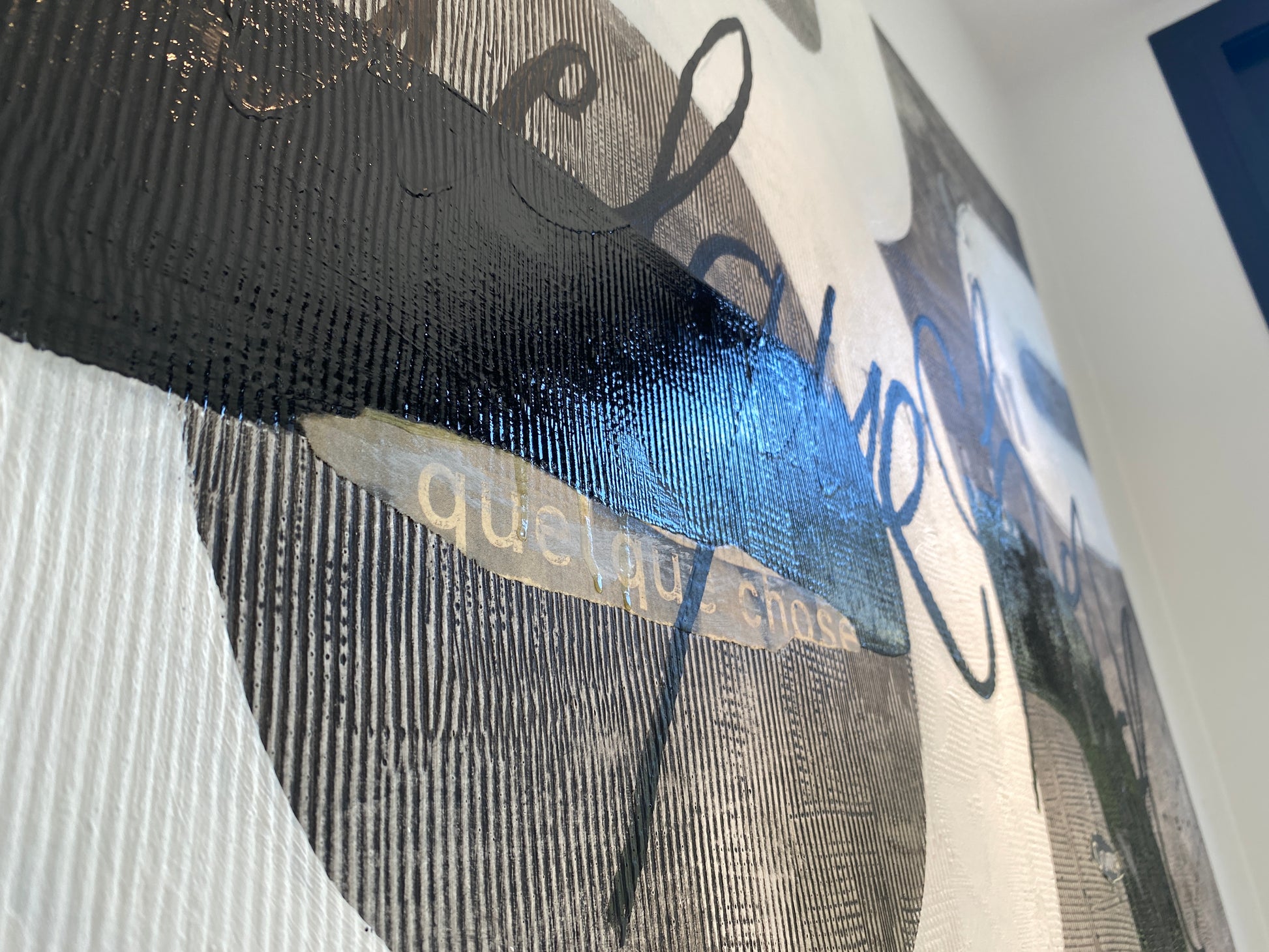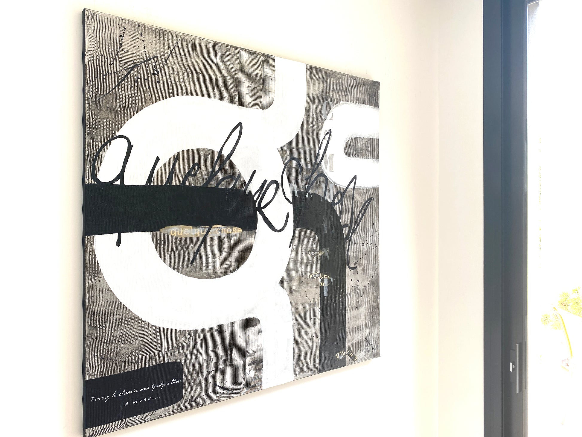 L'œuvre explore la relation entre l'image et le mot. Les inscriptions suggèrent une thématique existentielle ou de quête de sens, typique de l'approche de l'artiste qui cherche à traduire l'émotion et le langage sur la toile.