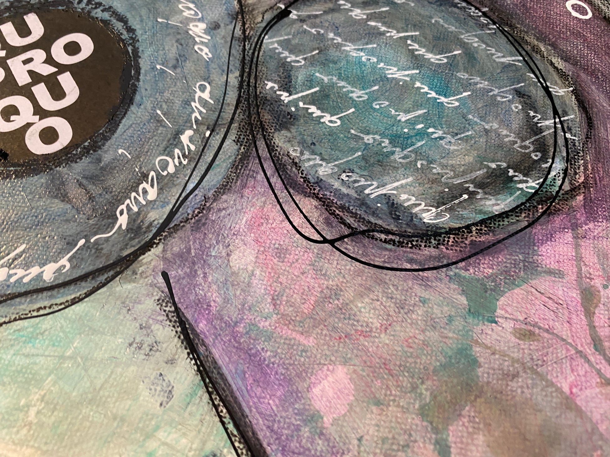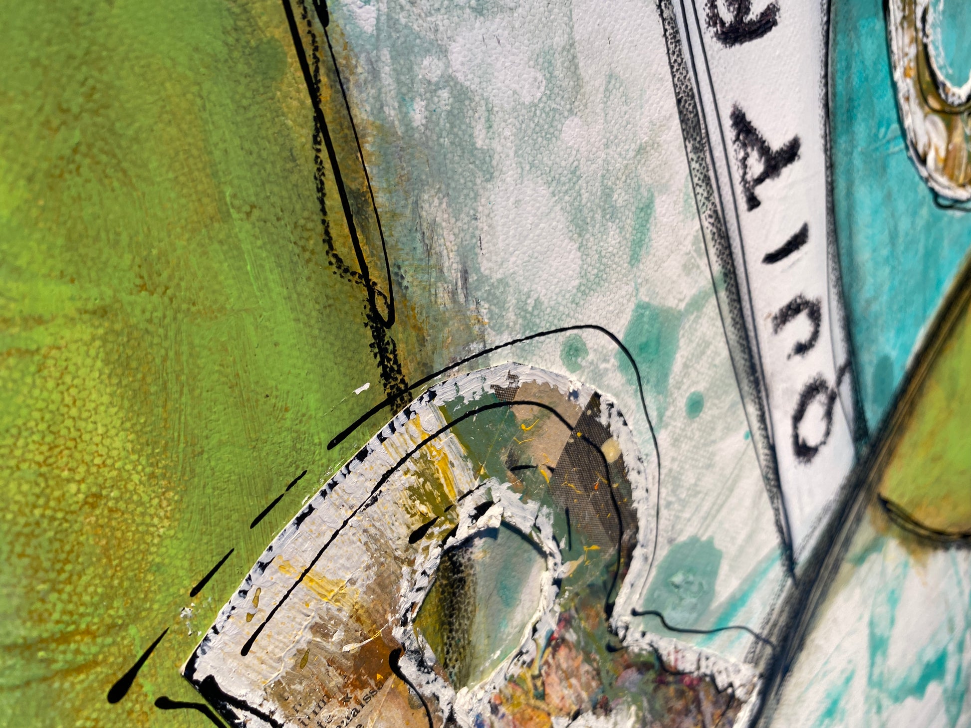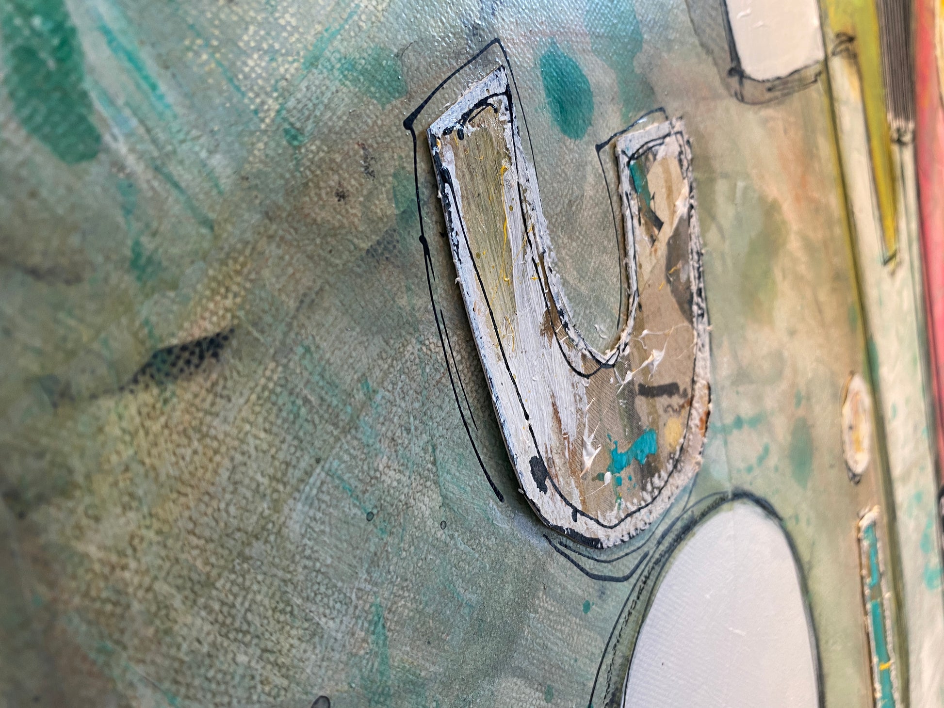 Acrylique et collages sur toile montée sur châssis