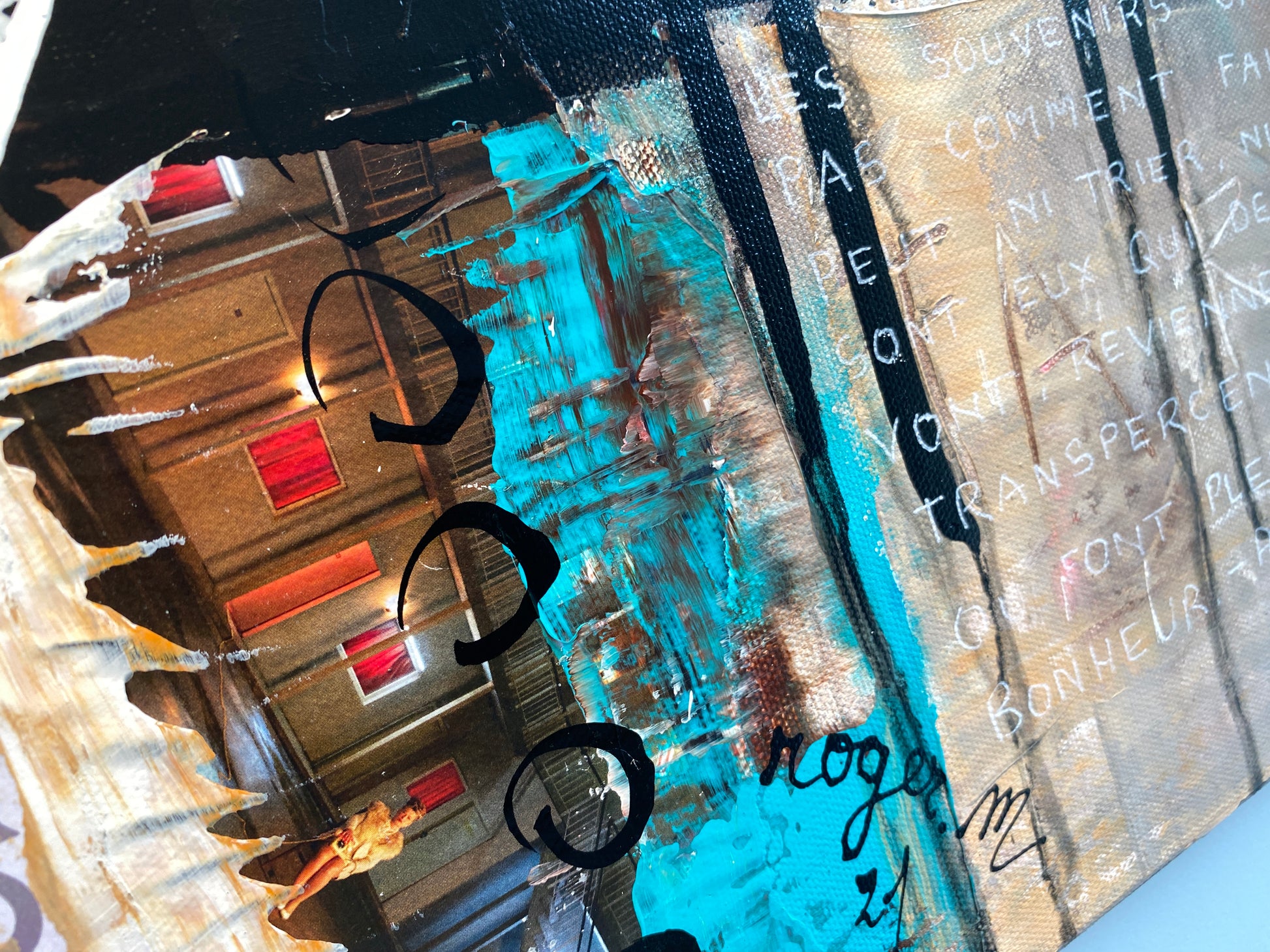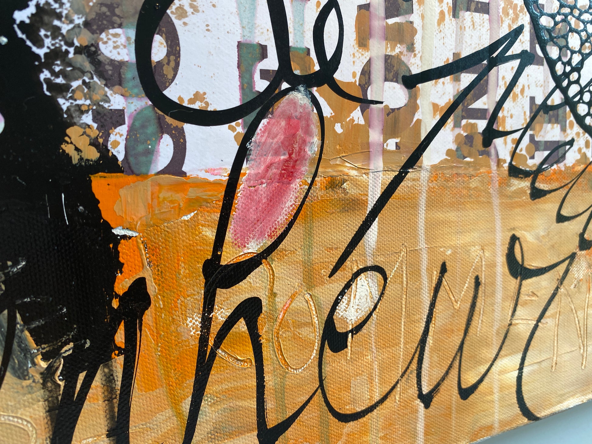 Fidèle à sa démarche, l'artiste utilise le mot comme point de départ. Le tableau est une exploration visuelle et émotionnelle de la mémoire, du souvenir et du bonheur, thèmes qui s'entremêlent et se superposent dans l'esprit.